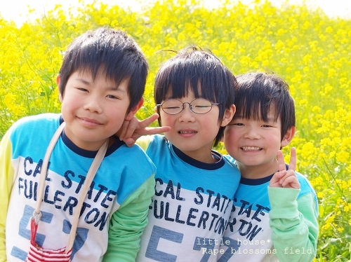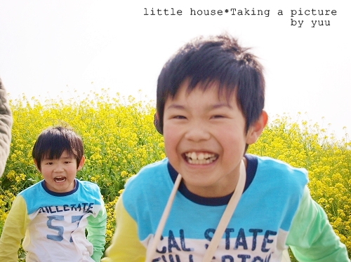 little house*■双子とお兄ちゃんの暮らし■ のんびりゆっくり気ままなフォト日記・・・*PAGE | 428 427 426 425 424 423 422 421 420 419 418 | ADMIN | WRITE 2010.04.30 Fri 10:56:32 ■ おとなカメラ vs こどもカメラ …*■・・・・・・・・・・・・・・・・・・・・・* 先日、お天気が良かったので 子供たちとカメラを持って、ドライブしてきました。 着いたところは… 菜の花畑~♪ ●撮影:お兄ちゃん(たか)● ■カメラ:casio EXILM■(←お兄ちゃんのカメラです) ん~お兄ちゃん目線のなかなかなアングル…* マクロ撮影もいつの間にか上手くなっていました。 お兄ちゃんの今まで持っていたコンデジのカメラが とうとう故障してしまったので、新しいカメラを買ってあげました。 新しいカメラが嬉しくて、色々撮りまくってます。 ●しっかりカメラマンになってました● ●真剣…● 道を挟んだ所にちょっとした高台??みたいな所があったので 子供たちとパパは、ここに上がって菜の花畑を眺めていました。 「お~~~~~い!」(母) …っと呼んでみんなを撮ろうとしていたら… 逆にお兄ちゃんに写真を撮られてしまいました。(恥)” ●お兄ちゃんが撮ってくれました…● せっかくなので、もう1枚… お兄ちゃんに写真を撮ってもらいました。 ●遠目なので…● なかなか自分自身を撮ってもらうことが少ないので 子供に写真を撮ってもらえると嬉しいですね。 (思いっきり普段着ですが…)(汗)”ハハハ… 私も一眼レフを持ってきたので… 久し振りに真剣に写真を撮りまくってしまいました。 ●逆光で撮ったらほんわか~した菜の花になりました● しばらくすると… 高台から降りてきた子供たち… ●トコトコ歩くゆうちゃん…● 菜の花畑に隠れていた3人を見っけ!! ●ここだよ~● せっかくだから・・ みんなで写真を撮ろうよ! ●はいチーズ!!● ゆうちゃんが、メルヘンチックに撮りたいというので…(汗)” それっぽく… 撮ってみた。 ●まぁ~♪ウフフ* (男にしておくのが惜しい…)● そんなゆうちゃんが、 ママの一眼レフで写真を撮ってくれました。 ゆうちゃんもなかなかのセンスなのです。 まずは… そらちゃんとパパとママの3人を撮ってもらうことにしました。 完成作品はこちら。 ↓↓ ●あれ? そらちゃんがいない…● あっ… こっちかいっっっ…(滝汗)” ↓↓ ●ひとりぼっちのそらちゃん・・・● 思いもつかない… ゆうちゃん目線は、いつも最高なのでした。(大笑)” 今度は、ママ(mei)が、写真を撮ってあげました。 おっ… いい笑顔だね~♪ ●スマイル!● 今度は、そらちゃんも一眼レフで撮ってみたいというので、 カメラを貸してあげました。 そらちゃんの作品はこちら・・ ↓ ↓ ●あっ…悲しい(T_T)●(←でも、いいのです。) そらちゃん目線のカメラも面白かったです。 最後は、カメラマンゆうちゃんが一眼レフで記念写真を 撮ってくれました。 ●はい!ポーズ● (なかなかいいじゃないですか…) でも… ほめたら最後… このまんま、シャッターを連射したまま止まりませんでした。 カシャ カシャ カシャ カシャ ・ ・ ・ ・ (同じような写真が何十枚と…) あまりのすごさに… みんなよろけて… ●大笑い…● ゆっ・・ゆうちゃ~~~~~~~~~ん!!! お兄ちゃん(たか)もそらちゃんも大笑いしながら ゆうちゃんの所へ駆けて行きました。 ●あははは…● いつも何かしら、やらかしてくれちゃうゆうちゃん。 でも… ゆうちゃんは、いつも至ってまじめ?!なんです。 ●自分撮りを楽しんでま~す● 子供たちとカメラで遊ぶのも楽しいですね~♪ ■・・………………………………………■ ●お知らせ● (参加締め切りは、5/8までとさせて頂きますね) ■・・………………………………………■ さて… すでに沢山の方から温かいメッセージや参加をいただきまして 嬉しく思っています。(ありがとうございます) 久し振りに ■little house*■から感謝をこめて… プレゼント企画をしたいと思います。 プレゼントの内容は… 届いてからのお楽しみです♪ (スウィーツ・雑貨・ハンドメイド雑貨…の予定) 参加希望の方は… ●お名前 ●ハンドルネーム ●メールアドレス ●HP(お持ちの方) ●(〒)住所 ◆そのほか…何かメッセージでも頂ければ嬉しいです…◆ …以上を明記の上、こちらまで送ってくださいね* ◆お便りメールはこちらからどうぞ◆ ↓ ↓ ↓ ![]() お待ちしていますね* (はじめましての方でおokですよー) ■・・………………………………………■ *………………………* 日記がおもしろかったら・・ポチッと押して頂けると嬉しいです* ■ありがとうございます■ ↓ ポチッ *・・・・・・・・・・・・・・・・・・・・・・・・* PR Commentsいかがお過ごしですか?Posted by youtanmom 2010/05/01(Sat) 17:24:18 EDIT GW初日、いかがお過ごしですか?漢字勉強中?