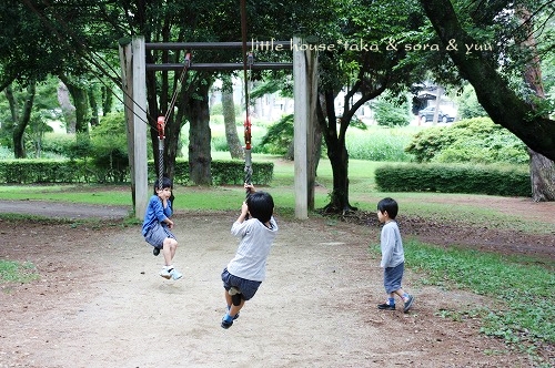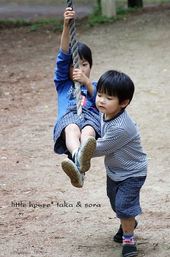 little house*■双子とお兄ちゃんの暮らし■ のんびりゆっくり気ままなフォト日記・・・*PAGE | 224 223 222 221 220 219 218 217 215 214 213 | ADMIN | WRITE 2009.06.02 Tue 22:40:44 ■ 怖いけど楽しい・・・* ■・・・・・・・・・・・・・・・・・・・・・* またまた前回の日記の続き・・・ 虫取りとカラスの捕獲??を楽しんだゆうちゃん・・・(笑) その後は・・・ 森林浴を楽しみながら・・・ 思いっきり遊びました。 ●まだ虫を探しているゆうちゃんとお兄ちゃん● 川に何かいるかな~?っと 仲良く二人で遊んでます。 ●ゆうとそら● この川には・・・ お魚さんがいないのですぐに飽きてました・・・ ( ̄о ̄)ハハハ… そして、 この公園にはちょっとしたアスレチック?のような遊具があるので スリルを楽しみ事が出来るのでした。 ●怖がりなゆうちゃん● 私に似て・・・ 高所恐怖症のゆうちゃんですが・・・ チャレンジ精神はめちゃくちゃあるんです。 (後で後悔するタイプですが・・)( ̄о ̄)"ハイッ! そらちゃんも頑張って登ります。 ●怖がりだけど結構平気なそら● なかなか登れないゆうちゃんを横目に ドンドン登るそらちゃん。 思いのほかそらちゃん余裕なのです。 ↓ そして・・・ とりあえず登りきったゆうちゃんですが・・・ 今度は降りるのが怖いのでした。 頑張れ~♪ ゆうちゃん。 お兄ちゃんは・・・っと言うと ツリーハウスの上にいました。 ●お兄ちゃん● いつの間にかゆうちゃん・・・ やる気マンマンなのか? 味を占めたのか? 恐怖を乗り切ったのか? 更なるチャレンジをしようとしていました* ●ゆうちゃん● 本当はこの遊具・・・ 怖いんです。 でも・・・ なかなかいい感じで登ってました。 今日のゆうちゃんは、ちょっと違うのかしら? ・・・っと思ったのもつかの間・・・ あやしい雲行き。 ●ちょっとビビリ顔のゆうちゃん● 大丈夫かな~? ・・・そう見守る間もなく 叫んでました(汗)"( ̄▽ ̄)"やっぱりな~ ●叫ぶゆうちゃん● でも・・・ ここまできたんだし・・・ 自分で頑張ってほしかったので・・・ 応援してみます。 ●駄目だこりゃ~のゆうちゃん● 何だかんだと、大騒ぎしながらも 一歩づつ進んで何とか降りられました。(ホッ) ●何事もなかったような顔をするゆうちゃん● そのうち・・・ 川遊びを楽しんでいたお兄ちゃんとそらちゃんも・・・ 一緒に遊んでいました。 ゆうちゃんも2回目のチャレンジ!!! おっ・・・ 見えてきました。 何だかみんな大丈夫そうかな? ●慎重なお兄ちゃん● ●2度目で男になったゆうちゃん● ●お尻から降りるそらちゃん● みんなそれぞれに勇気をもらって 降りる事が出来ました。(ヤレヤレ・・・) 男の子は、やっぱりそうでなくちゃね* そして今度は・・・ ターザンロープ。 これは、3人とも大好きな遊具です。 みんなで交代で助け合って遊んでいたので エライなぁ~っと少し感心してしまいました。 ●お兄ちゃんを引っ張るそらちゃん● ●そらちゃん待ちのゆうちゃん● そして・・・ 最後はこれ。 グラグラして楽しいのです。 ・・・突然そらちゃんが走り出したので どうしたんだろうと思ったら・・・ ●走るそらちゃん● 赤く綺麗なカエデの葉が沢山落ちていたので その葉っぱで遊びたかったみたいです。 (な~んだ!) ●カエデの葉を並べるそらちゃん● ゆうちゃんも一緒に葉っぱを探します・・・ ●カエデの種を見つけたゆうちゃん● お兄ちゃんも・・・ そして・・・ ひたすら葉っぱを並べていました。 可愛いね~♪ ソロソロおやつでも食べようね・・・* ●アイスを食べるそらちゃん● ●ポテロングを食べるゆうちゃん● まだまだ遊びたかったけど・・・ この後、雨が降ってきちゃったので お家に帰りました。 子供たちと一緒に遊んでいると色んな発見が出来るので とっても楽しかったです♪ ・・・おしまい。 (長いお出掛け日記にお付き合い下さってありがとうございます。) ・・・・・・・・・・・・・・・・・・・・・・・・・・・* 日記がおもしろかったら・・ポチッと押して頂けると嬉しいです* ぜひ!応援!!宜しくお願いします* ↓ ポチッ ●ランキング3ポチっ・・・とよろしくお願いします● ◆お問合せ&お便りメールはこちらからどうぞ◆ ![]() PR CommentsComment Form |