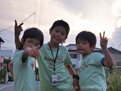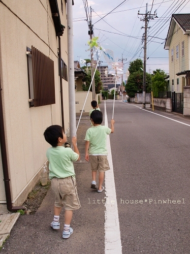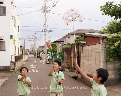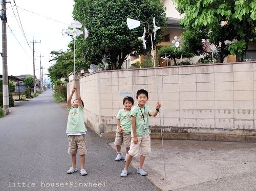 little house*■双子とお兄ちゃんの暮らし■ のんびりゆっくり気ままなフォト日記・・・*PAGE | 453 452 451 450 449 448 447 446 445 444 443 | ADMIN | WRITE 2010.06.18 Fri 23:26:08 ■ 思いがけない嬉しいこと… ■・・・・・・・・・・・・・・・・・・・・・* 日が長くなってきましたね・・・ 夕方になってもまだ明るいので、最近は子供たちと 近くまで、お散歩に行く事が増えました。 いい運動になります。 ●夕焼け空● 不思議な色の空… ●入道雲だ~!● 予報では、夕方雨になるんだとか・・・ それでも風が気持ち良かったので 子供たちとお散歩に行きました。 子供たちと一緒に空を見上げて 雲の形や空の色を楽しんだりもしました。 ●色んなそらが見れるね~● お兄ちゃんはマイカメラを持って… ゆうとそらは、お兄ちゃんの後をついて行きました。 ●何かあるかな~?● ワクワクドキドキ… 楽しいお散歩。 ●楽しいね~● ●夕焼け空をバックに…● トコトコ歩いていたら… ふと目に止まりました。 ●ん?あれ?すごーい!!● ●わっ…すごい!風車いっぱい~♪● ペットボトルを利用してとても上手に作られていました。 ●ギターの形をした風車● ●キラキラ良く回る風車…● お兄ちゃん(たかちゃん)は、こういうのが大好きなので… 飽きずにしばらくず~っと すごーい! すごーい! って・・・眺めていたんです。 もちろん、みんなも… そろそろまたお散歩に行こうとした時… ここのお家の方がたまたま外に出てきて 私たちに声を掛けてくれました。 『こんにちは~3人男の子かい?』 『風車好きかい?』 『好きなの1つあげるから中に入っておいでー』 …っとま~こんな展開になってしまい… 思いがけない嬉しいことでした。 子供たちは… ちょっぴり、遠慮しつつも 素敵な風車を1つづつもらったんです。 すごいものをもらって… 喜ぶ3人… ●わぁ~♪すごーい!すごーい!● 素敵なお土産が出来たので 今日のお散歩は中断しちゃいました。 ●壊れちゃうからお家に帰ろう● 長いポール間で頂いてしまい… 本当に至れり尽くせり… ●お散歩に来て良かったね~♪● お家に帰って… 鳥よけに…と、風車を飾りました。 ●ブルーベリーの木の近くに置いてみました● 毎年、鳥さんにブルーベリーの実を食べられちゃっていたので 今年はこれで… 沢山収穫できるといいな… ●鯉のぼりの風車みたい…● これを機にお兄ちゃんの創作意欲もまた出てきたみたい…(ウフ*) 家についてしばらくすると… 風が強くなってきました。 空を見上げたら… ●重たそうな雲が…● 今にも雨が降ってきそう… カミナリも来そうな~( ̄Д ̄)ぎょっ… 案の定、この後大雨でした。 ありゃ~ *………………………* 日記がおもしろかったら・・ポチッと押して頂けると嬉しいです* ■ありがとうございます!■ CommentsComment Form |