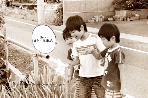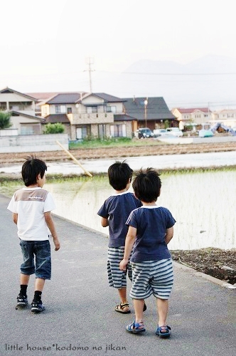 little house*■双子とお兄ちゃんの暮らし■ のんびりゆっくり気ままなフォト日記・・・*PAGE | 236 235 234 233 232 231 230 229 228 227 226 | ADMIN | WRITE 2009.06.15 Mon 14:33:44 ■こんなに近いのに・・・*■・・・・・・・・・・・・・・・・・・・・・* (本日も写真盛りだくさんです) 最近・・・ 子供たちは、夕暮れのお散歩&探険を 楽しみにしているので、今日もカメラを片手に出掛けてみました。 ●お兄ちゃん● ●そらちゃん● いつもはこの道をまっすぐ行くのですが・・・ 今日はいつもと違った道を探険に行きました。 お家の裏の道に出ると いつもと違った風景を見ることが出来ました。 ●何かを見つけた3人● 自分のお家を裏からじっくり見ることがあんまりないので ちょっと新鮮だったみたいです(笑) ●我が家を裏から見たところ…● 双子たちの子守は・・・ お兄ちゃんに任せます。 ●頼もしいお兄ちゃん● ●危なっかしい双子たち● くっ付きすぎです。 いつも見慣れない住宅街をトコトコと歩いていると とっても目立つ風車を発見しました。 よく回っていたので 子供たちは釘付けでした。 ●風車● ●よく回ります● よく見るとペットボトルで作られていました。 物作りの好きなおにいちゃんは・・・ かなりじっくり観察してました。(笑) ゆうちゃんが指揮を取りながら・・・ みんなで歩きます。 トコトコ歩いていると・・・ そらちゃんが見つけたものは・・・ ●何かを発見したそらちゃん● それは・・ 眩しい位の綺麗な夕焼けでした。 本当に綺麗・・・ トコトコ歩いていたら・・・ 子供たちが普段見慣れない水田がありました。 お水が沢山だったので 嬉しかったみたい♪ ●初めての水田に感激するお兄ちゃん● ●ゆうちゃんも● お兄ちゃん・・・ 本当は入りたいんでしょう???( ̄о ̄)(ボソッ) ●お兄ちゃん● だんだんと・・・ 楽しくなってきた3人です。 ●井戸端会議中~♪● 水田の隣には、こんな風景も見えました。 そらちゃんはこの風景を 『泥の道』・・・と名づけていました。(なるほど!) ●泥の道をバックにパチリンコ☆● しばらく水田の周りを 3人は探険していました。 ●ゆうちゃん● ●お水が流れているのを見ているそらちゃん● ●ヒョロヒョロの葉っぱを見つけたゆうちゃん● ●やっぱり水田が気になるお兄ちゃん● ●ゆうちゃん● ●ニコニコそらちゃん● たくさんお水が流れているので 二人とも真剣にず~~~っとここを覗き込んでいました。 ●仲良しのそらとゆう● そろそろ・・・ 夕日が沈んできたね。 夕日が水田のお水に光ってキラキラしていました。 綺麗だな~ アッ・・・ そらちゃんのお顔も夕日で赤く見えるよ~♪ ●そらちゃん● そろそろ帰ろうか・・・ アッ・・・ ここにも風車だね~♪ また少し形が違うんだね。 この風車・・・ 鳥除けなのかな~? よく見ると畑のあちこちに風車がありました。 楽しいね~♪ そうだね~♪ そろそろ帰ろう・・・ 田舎道は・・・ 可愛いお花がたくさんありました。 そして・・・ 最後に記念撮影* パチリンコ・・・☆ 緑がいっぱいで・・・ たくさん歩いて・・・ 風が気持ちよくて・・・ 今日はいい探険ごっこが出来たね。 最後に見つけた・・・ いっぱいの水溜り。 水溜りに入りたかったけど・・・ 今日は長靴じゃないからダメ~♪ ●ギリギリのゆうちゃん● さ・・・ お家に着いたよ~♪ こんなに近いのに・・・ あんまり見ることの出来なかった風景・・・。 子供たちも私もとても新鮮でした。 もっと子供たちと色んな所へ出かけてみたいです。 あれれ?? そらちゃん・・・どうしたの? ●帰りたくないそらちゃん● お散歩が楽しかったんだね・・・ 今度また行こうね! そらちゃん・・・* ・・・・・・・・・・・・・・・・・・・・・・・・・・・* 日記がおもしろかったら・・ポチッと押して頂けると嬉しいです* ぜひ!応援!!宜しくお願いします* ↓ ポチッ ●ランキング3ポチっ・・・とよろしくお願いします● ◆お問合せ&お便りメールはこちらからどうぞ◆ ![]() PR CommentsComment Form |