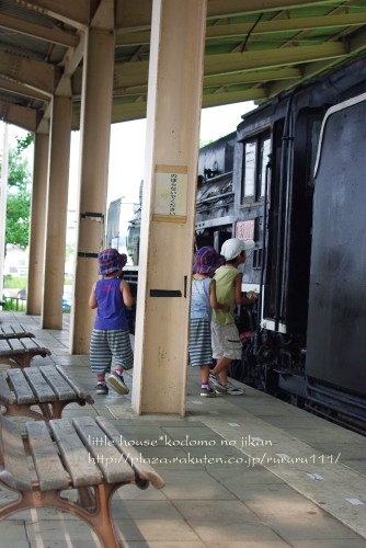little house*■双子とお兄ちゃんの暮らし■ のんびりゆっくり気ままなフォト日記・・・*PAGE | 274 273 272 271 270 269 268 267 266 265 264 | ADMIN | WRITE 2009.08.07 Fri 18:55:40 ■k-mでお散歩・・・その①(うまいのだ!)■・・・・・・・・・・・・・・・・・・・・・* 久し振りに晴れた昨日・・・ 子供達は、待ってました~!っと言わんばかりに 公園行きたいと大騒ぎ・・・( ̄Д ̄)"暑いでっせ・・・っ!! 仕方が無いので・・・ お付き合いする事となりました。 それにしても 暑い!!! しかも蒸し暑くて汗だくです。 公園に到着するなり・・・ 暑いせいもあって喉もカラカラ・・・ まずは水分補給。(これ大切です) ●ボトルを覗くそらちゃんとウマウマゆうちゃん● しっかり味わっております・・・。 グビグビ・・・ ごくごく・・・ う~ん! うまいのだ! 二人とも・・・ すでに・・・汗びっしょりでした。 しっかり水分補給した後は・・・ みんなで遊びました。 ●ジャン ケン ポン● 二人とも同じものばかり出すので なかなか勝負がつきません。 でもようやく・・・ ゆうちゃんの勝ち~~~♪ そして・・・ お兄ちゃん、公園内の無料工作に参加していたのですが・・・ 可愛い作品を持って帰ってきました。 紙コップで作ったパクパク人形です。 お兄ちゃんも双子達を相手に ジャンケン勝負して遊びました。 負けたり・・・ 勝ったり・・・ ジャンケン大会で意外と盛り上がっていた3人でした。 ゆうちゃん、この帽子がとっても気に入っているんです。 公園内にある機関車D51と一緒に記念撮影しました。 機関車が大好きなお兄ちゃんにとって ここの公園は・・・ ウハウハ*場所なんです。 せっかくだから・・・ 3人で記念撮影しよう!!! カメラを向けると・・・このありさま。( ̄о ̄)"あの~ そらちゃん・・・ 絶妙な顔してました。(汗)" ね~ね~! 気を取り直して! もう1回撮ろうよ~・・・ あーーーーーーーーーっ 行ってしまった・・・ そして残された私・・・( ̄Э ̄)"チェッ・・・ 双子達の向かった先は・・・ もちろん。 デゴイチ(D51)でした。 機関車に乗る事が出来るので みんなで乗ってみました。 でもやっぱりここが1番。 はい! ポーズ* まだまだ続くk-mでお散歩シリーズ。 続きは・・・後ほど。 ちなみに今日は、ペンタのk-mで撮影しました。 ・・・・・・・・・・・・・・・・・・・・・・・・・・* 日記がおもしろかったら・・ポチッと押して頂けると嬉しいです* ぜひ!応援!!宜しくお願いします* ↓ ポチッ ●こちらのランキングも2ポチッと・・・よろしくお願いします● ◆お問合せ&お便りメールはこちらからどうぞ◆ ![]() PR Comments無題Posted by まると 2009/08/08(Sat) 20:33:57 EDIT こんにちは。
