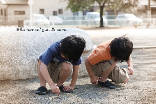 little house*■双子とお兄ちゃんの暮らし■ のんびりゆっくり気ままなフォト日記・・・*PAGE | 196 195 194 193 192 191 190 189 188 187 186 | ADMIN | WRITE 2009.04.20 Mon 18:51:21 写真いっぱい*アリさんと公園・・・*・・・・・・・・・・・・・・・・・・・・・* お天気がいいので 双子達と一緒に公園へ行きました。 二人仲良く・・・ いっぱい いっぱい遊びます。 赤ちゃんの頃から、よく遊びに来ている公園なので もう~ここの遊具には、 慣れっこのお二人さんでした。 ひたすら・・・ 同じ姿勢で砂場で何かをしていたお二人さん。 そらちゃん、何しているの~? お砂かな? ゆうちゃん、何? それ、何? 木の実でしょうか?? ゆうちゃん・・・ 飽きもせず、ずっと地面とにらめっこ。 何だろう? 良く見てみたら・・・ 大きなアリさんの穴がありました。 何をしているのかと思えば・・・ アリさんの穴を埋めてるゆうちゃんなのでした。(汗)" そらちゃんは・・・ ↓ 優しいのね* ゆうちゃん・・・ ちょっと反省中?(笑)" それにしても・・・ 沢山のアリさんの穴。 さすがにそらちゃんも・・・ やっぱり気になっちゃうみたい・・・(^-^) ここの公園に1本だけ咲いていた桜の木。 遅咲きの桜なので、まだきれいに咲いていました。 ピンク色で可愛いな~♪ 桜の木をバックに・・・ ゆうちゃんをパチリンコッ・・・* (何気に七三わけ・・・?)(笑)プププッ・・・ 二人並んで歩いていたら・・・ ゆうちゃんのズボンにてんとう虫ちゃんが飛んできました! (ビックリ!!) ゆうちゃんは、このキャンディーが最近好きです。 いつも持ち歩いてペロペロなめてます。 いつも二人は一緒だね。 ぁ・・・またアリの巣見つけたの~? しかし・・・ここの公園・・・ ありの巣がすごいな~ 突然・・・ ゆうちゃんが・・ ・・って、ずっとママは写真撮りっぱなしなんですけど(滝汗)" ハイハイ。 了解ですよ~♪ じゃ~二人並んでくださいな* じゃ~撮るよ~♪ ハイ!チーズ* ・・・ゲッ。 ゆうちゃん、また変顔してる~っ”” ねー ねー いいお顔してね~('О')" じゃ・・・ 気を取り直して・・・! ハイ! チーズ* いいね~ いいね~~っ♪ もう1枚。 あら・・・ そらちゃんったら・・・。 ん? 寝てる? な~んちゃって! だって。 大笑いしているお二人さんでした♪ 返り道・・・ 線路を渡って帰ります。 電車が好きな子供達。 ここの公園へ来ると必ず電車が来るのを待ちます。 電車がなかなか来ません。 まだかな~ まだかな~ 早く来ないかな~? 電車の汽笛が聞こえたね。 アッ・・・来たぞ~! うわぁ~♪ 青い電車だ! 電車さ~ん! バイバーィ! 電車の運転士さんはいつも手を振ってくれるので 子供達、すごく喜ぶんですよ。 運転士さん、優しいね! ・・・・・・・・・・・・・・・・・・・・・・・・・・・* 日記がおもしろかったら・・ポチッと押して頂けると嬉しいです* ぜひ!応援!!宜しくお願いします* ↓ ポチッ ●ランキング5ポチっ・・・とよろしくお願いします● ◆お問合せ&お便りメールはこちらからどうぞ◆ ![]() PR Comments無題Posted by liberty..* 2009/04/20(Mon) 22:49:32 EDIT mei*ちゃん、こんばんは。