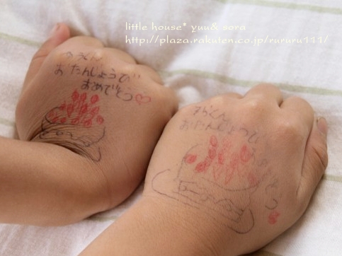 little house*■双子とお兄ちゃんの暮らし■ のんびりゆっくり気ままなフォト日記・・・*PAGE | 302 301 300 299 298 297 296 295 294 293 292 | ADMIN | WRITE 2009.09.17 Thu 20:39:21 ■ 僕たちのお誕生日・・・* ■・・・・・・・・・・・・・・・・・・・・・* 9月14日は、ぼくたちの誕生日・・・* ●幼稚園の先生に描いてもらいました● ●いいでしょう~♪● ●ウシシッ・・・● 2人は6歳になりました。 ●6さいだぞ~!● 6年前のこの日・・・ 緊急帝王切開で双子を出産。 麻酔の効きづらい私・・・ 帝王切開の痛みもリアルでした(汗)" あの痛みの恐ろしかったのを忘れもしません・・・(Y_Y) でも、2人は・・・元気に生まれてくれました。 そらは・・・2020グラムで生まれました。 ゆうは・・・2340グラムで生まれました。 大きな病気もせず、元気に6歳の誕生日を迎えられた事が 私にとって1番幸せな事* 小さかった二人が・・・ こんなに大きくなってくれた事に改めて驚きと嬉しさを感じます。 ☆・。・。・お誕生日おめでとう・。・。☆ そして・・・ パパとママの所に生まれて来てくれてありがとう♪ ●いえ・・・どういたしまして● お兄ちゃんも2人の誕生日を 沢山お祝いしてくれました。 ●ゆう&そら、おめでとう!● 家族みんなでお祝いした あたたかなお誕生日・・・♪ ●美味しいご馳走を食べました● ●お腹いっぱい● お誕生日ケーキは・・・ 大きくて丸いケーキを買いたかったけれど・・・ 好みの違う2人・・・(Y_Y) そらちゃんは・・・チョコレート派 ゆうちゃんは・・・生クリーム+イチゴ派 仕方が無いので・・・ みんな違うケーキを選んで食べました。 1本のロウソクに願いを込めて・・・ ●フ~ッ●(そらちゃん) ゆうちゃんも・・・ ●フ~ッするよ*● 2人の願い事が叶いますように・・・☆ そして・・・ 6歳の誕生日プレゼント。 それは・・・ ●本物のギターと本物のロボット● 本物のアコーステックギターはゆうちゃんが選んだもの・・・ 母:『ゆうちゃん、誕生日プレゼント何がいい?』 ゆう:『本物のギター・・・』 母:『へ?本物??』 ●それがコレ↓・・・● 一応・・・ 子供用なんですが、本物なんです。 私も一緒に練習してますよ~♪ 念願のギターを弾くゆうちゃん。 ●見た目は、プロ風??● ●ギター弾けるよ・・● ・・・。 ゆうちゃんは、まだまだ上手じゃないけど・・・ 毎日ギターを練習してます。 私も・・・ いつか親子して弾けるようになったらいいな~♪ そして、そらちゃんは・・・ 本物のロボット! ●ヘビさんのような動きをします● 動きや表情や音や光と・・・まぁ~色々と かなりリアルな品物でして・・。 リモコンで動くんですが・・・すごいんです。 キモ可愛いロボットさんです。 ギターもロボットもそれなりのお値段でしたが・・・ いいお誕生日プレゼントになりました*(よかった~) ゆうとそらは、来年いよいよピカピカ☆の1年生になります。 そろそろ、ランドセル見てこなくちゃ~! 夢中で子育てをしていると 時が経つ早さに本当に驚いてしまいますね。 ・・・・・・・・・・・・・・・・・・・・・・・・・・* 日記がおもしろかったら・・ポチッと押して頂けると嬉しいです* ■こちら只今1位☆■ ありがとうございます* ↓ ポチッ *・・・・・・・・・・・・・・・・・・・・・・・・*