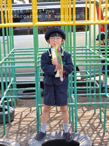 little house*■双子とお兄ちゃんの暮らし■ のんびりゆっくり気ままなフォト日記・・・*PAGE | 407 406 405 403 402 401 400 399 398 397 396 | ADMIN | WRITE 2010.03.25 Thu 22:55:20 ■ 写真い~っぱい!のありがとう…* ■・・・・・・・・・・・・・・・・・・・・・* みんなとさようなら…をした後は… ●そらちゃんの下駄箱● ●ゆうちゃん● みんなで記念撮影しました。 ●パパと一緒だよ● ●そらちゃんの分のチューリップも持ってるよ● ●そらちゃん、どうしているかな~?● …何気にずっとそらちゃんの事を気にしていたゆうちゃんです。 優しいなぁ~♪ 混雑している中… 先生をようやくゲット!! お友達と一緒に記念撮影しました。 ●嬉しいね~● この後、大好きな先生や仲良しのお友達と いっぱい!いっぱい!… 写真を撮りました。 ■ちょこっと*思い出アルバム…■ ●n先生と…*● ●大好きだったガールフレンドなのです● ●元気いっぱいなお二人さん● ●スキスキ~攻撃● ●仲良し4人トリオ…● 本当だったらそらちゃんも一緒だったけどね… ゆうちゃんもそらちゃんも… このあったかくて優しい幼稚園が大好きでした。 年中さんの時にお世話になったI先生… 年長さんになってもなかよく遊んでくれました~♪ ●I先生ありがとうございました● ●優しい園長先生とk先生…● ●ゆうちゃん、大好きなんだよね…k先生のこと● (うれしいー) 沢山記念撮影をした後は… 大好きだった遊具で遊びました。 最後だから、いっぱいいっぱい遊びました。 ●本当は逆上がり出来るんだよ…● …でも、この日は上手くいかなかったみたい。 (そんな時もあるさ。) これこれ… ゆうちゃん好きなんです。 1番上まで登ってぶら下がってそのまま落ちるんです。 見ている方がヒヤヒヤします。(-Дー)””怖… そして・・ 手渡りは、ゆうちゃんもそらちゃんもお猿さんのように 上手でした。 何度も行ったり来たりして… さすがにしんどくなったゆうちゃんの一瞬のこの顔に・・・(笑) このパンダさん、入園した時に初めて遊んだ遊具なんです。 入園式の日… このぱんださんにゆうちゃんとそらちゃんが 二人で乗って写真を撮ったのを今でも覚えています。 二人とも本当に大きくなったね。 もう、このパンダさんには、二人いっしょには乗れなそうだもんね。 ゆうちゃんの大好きな木登りも… ●怖くないよ● 思い出のいっぱい詰まった幼稚園… 今度はそらちゃんと一緒に先生に会いに来なくちゃね。 最後は… 先生と。 ●女の子に挟まれて照れるゆうちゃん…*● ●先生本当に大好き*● ●先生…僕とそらちゃんの事、忘れちゃだめだよ…● …まだまだ続くよ… (次回は…そらちゃん編です) *………………………* 日記がおもしろかったら・・ポチッと押して頂けると嬉しいです* ■ありがとうございます■ ↓ ポチッ *・・・・・・・・・・・・・・・・・・・・・・・・* PR Comments無題Posted by ローズ* 2010/03/26(Fri) 11:12:21 EDIT mei*ちゃん 先日は可愛いお葉書ありがとう(*^_^*)
