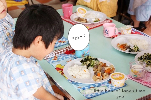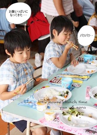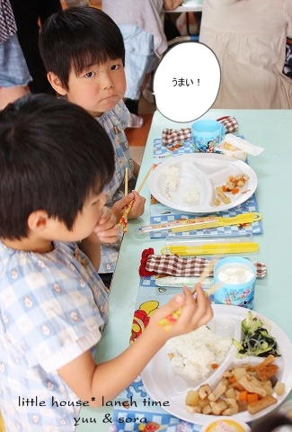little house*■双子とお兄ちゃんの暮らし■ のんびりゆっくり気ままなフォト日記・・・*PAGE | 243 242 241 240 239 238 237 236 235 234 233 | ADMIN | WRITE 2009.06.23 Tue 23:18:04 ■保育参観のつづき・・・*その②■・・・・・・・・・・・・・・・・・・・・・* 先週の(6/20) 土曜日の二人の保育参観の様子を 写真いっぱいで残してみました。 今日はその続きです。 ちょうちん作りのお製作の後は・・・ お待ちかねのランチタイムです♪ 給食のお当番さんが準備をしている間・・・ 少しベランダでパパと仲良しtime*。 ●パパとそらちゃん● 何を楽しそうにお話しているのかしら・・・? 母:『お~い!!』 ●照れるそらちゃんとパパ● そして・・・ ゆうちゃんも甘えん坊さんtime です。 あらま~♪ ●パパとゆうちゃん● ↑ 何だか二人とも カメラ意識しすぎよ~(笑) そしてお二人さんは・・・ ナフキンとコップとお箸を準備して待ちます。 ●腹ペコなお二人さん● そして・・・ 給食を配る準備が始まりました! ●嬉しいそらちゃん♪● 嬉しすぎて… にやけてます。(ハイッ!) ●ニヤ~ッ● ・・・あっ、 そうですか。( ̄о ̄)腹へりなのね~♪ そして・・・ そろそろ限界な二人・・・ ●ゆうちゃんも● ●そらちゃんも● 給食が大好きなのです。 そして・・・1番に並ぶ彼・・・。 それは・・・ゆうちゃん。 (こういう時だけは素早いのだ)(ボソッ)( ̄о ̄)"さすが~ ●1番のりのゆうちゃん● そらちゃんは・・・ 10番目位でした・・・(遅っ) ●腹へりそらちゃん● 一足先にご馳走をもらったゆうちゃん♪ ちゃんと綺麗にテーブルに置いていました。 エライ! 今日のメニューはこんなのでした。 そこそこ・・・栄養ありそうです。 そして・・・ そらちゃんもご馳走をもらってきました。 パパは記念にビデオを撮ります。 ご馳走を前に・・・ 二人とも嬉しそう~♪ ●喜ぶゆうとそら● すると・・・ 先生が。 『おかわりする人~♪』っと一言。 そしてつかさず・・・ ゆうちゃんは手を上げおかわりをします。 (毎日おかわりしているんだとか。) そして・・・ おかわりをしてしまったゆうちゃんのお皿は・・・ ●ドーダー!!!● てんこ盛りなのです。(汗)" ( ̄Д ̄)"ちゃんと食べれるのかしら・・・ 意外と小食のそらちゃんは・・・ ゆうちゃんのお皿に驚きます! ●ゆうちゃん、すげーっ● そして・・・ そらちゃんとお箸袋で遊んでいたら・・・ また先生が・・・ 『まだおかわりしたい人~♪』の声が・・・ そうです!!! この人・・・ つかさず、また・・・おかわりしたんです。( ̄▽ ̄)あのね~ ●あふれるおかず・・・● ●喜ぶゆうちゃん● ・・・なんか、何にも与えてないみたいに思われないかしら・・・(ボソッ) ちなみに・・ 右はそらちゃんのお皿。 左はゆうちゃんのお皿です。 驚くばかりです・・・('О')すごいのだー ●比べてみよう● さすがに先生も・・・ ビックリした事でしょう・・・ (痩せの大食いでスミマセン) ふと・・・ 窓の外を見たら・・・ あら? お兄ちゃん。 ●腹減りのお兄ちゃん● ・・・そうよね~ 目の前で美味しいご飯を食べているのを見ていたら・・・ ね~ッ・・・(もう少しだから、待っててね*) そして・・・ いただきますのおうたを歌って♪ 『いただきます』 ●そらちゃん、お手てはお胸さんですよ● そして、ひたすら食べるお二人さん・・・* ●リアルにすごい食欲● ●モグモグそらちゃん● ●自分撮りのゆうちゃん● さすがに・・・ ちょっとお腹いっぱいかな? ・・・っと思いきや、全部完食した二人なのでした。 ・・っと言うか、ゆうちゃんにはビックリです!! 給食を片付けた後は・・・ お帰りのお支度です。 ここでも、 素早いゆうちゃんなのでした。 (こういう所は、エライな~♪) そして・・・ お兄ちゃん・・・ お腹が減りすぎて・・・ 半分死に掛けてました(笑)”” ほらね・・・ ↓ ●お兄ちゃんとゆうちゃん● そらちゃんもお帰りの準備ok ~♪ みんな帰るお支度ができました。 お兄ちゃん・・・ やっと帰れるよ~(^-^+) 早く帰りましょ.。。 ●変顔のそらちゃん●(怖いのです) ゆうちゃんは仲良しのお友達と 記念に1枚撮りました。 ☆パチリンコ☆ お友達っていいね・・・♪ さ~て。 お帰りのお歌を歌って帰るよ~♪ 今日は何だか充実した保育参観だったね* 帰りは少しだけ幼稚園の遊具で遊んで帰りました。 ●だんご3兄弟● いつか・・・ ここで過ごした日がいい思い出になるんだろうな。 ・・・・・・・・・・・・・・・・・・・・・・・・・・・* 日記がおもしろかったら・・ポチッと押して頂けると嬉しいです* ぜひ!応援!!宜しくお願いします* ↓ ポチッ ●ランキング3ポチっ・・・とよろしくお願いします● ◆お問合せ&お便りメールはこちらからどうぞ◆ ![]() PR CommentsComment Form |