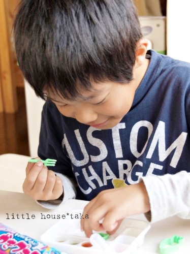 little house*■双子とお兄ちゃんの暮らし■ のんびりゆっくり気ままなフォト日記・・・*PAGE | 351 350 349 348 347 346 345 344 343 342 341 | ADMIN | WRITE 2009.12.03 Thu 23:04:45 ■ はじめてのお絵かきグミ・・・* ■・・・・・・・・・・・・・・・・・・・・・* 子供たちリクエストで・・・ こんなおやつを買ってみたのです。 ・・・お絵かきグミランド・・・ 母には、ナゾのお菓子でした。 お絵かきの出来るグミ??? 早速・・・ ゆうちゃんがこのお絵かきグミなるものに初挑戦! まずは色水のようなものを作って・・・ 型にその色水を入れて固めると言うものでした。 最近は、おやつも進化していますね~(ビックリ!) ●真剣なのです● 自分の好きなうさぎちゃんの型を粉に上に置いて 色水を少しづつ入れてやっと固まったところ・・・ 本当にグミのような触感なのかしら?? 母は、不思議でたまりません・・・('〇')"おいしいのか? ●型からはずしたところ・・・● 微妙なウサギちゃんですが・・・ 初めてにしてはカラフルでいい・・・ そして・・・ お味のほうは?? ●おいしい~● 見た目はともかく・・・ 美味しいみたいです。 続いてそらちゃんも・・・ ●ゆうちゃんがやり方を教えてあげてます● そらちゃんは、ニンジンさんの型を選びました。 それにしても妙~に上手な出来栄え・・・(驚き!) 美味しいかな? ●美味しいよ~● 自分で作るから余計に美味しいみたいです。 最後に学校から帰ってきたお兄ちゃんも・・・・ さすがにお兄ちゃん・・・ 自分で説明書を熟読して作り始めていました。(さすが!) ちなみに・・・ お兄ちゃんはお家の型を選んでいました。 ●すッごく楽しそう~● 自分で作って食べれるおやつは、 子供って好きですよね~♪ 最後に・・・ 母も・・・ 1つ味見をさせてもらったのですが・・・ ん========= 微妙。 ・・・・・・・・・・・・・・・・・・・・・・・* 日記がおもしろかったら・・ポチッと押して頂けると嬉しいです* ■ありがとうございます■ ↓ ポチッ *・・・・・・・・・・・・・・・・・・・・・・・・* PR CommentsComment Form |