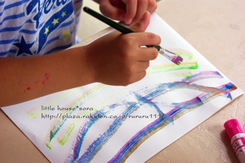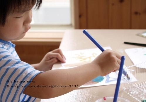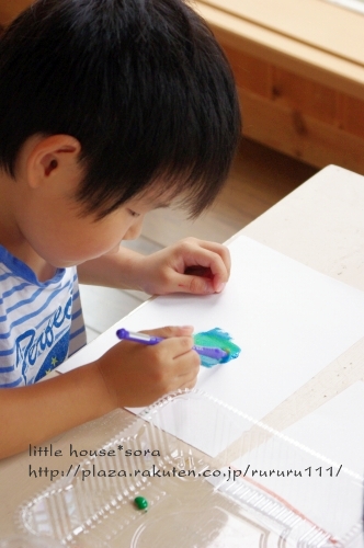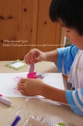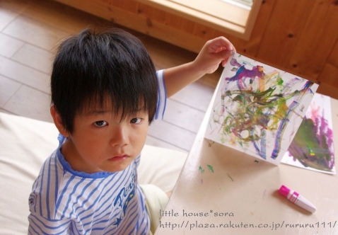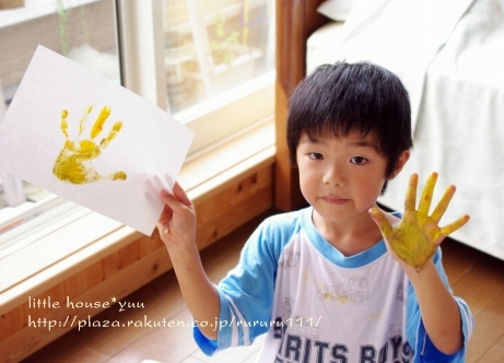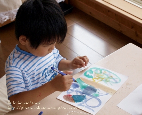 little house*■双子とお兄ちゃんの暮らし■ のんびりゆっくり気ままなフォト日記・・・*PAGE | 298 297 296 295 294 293 292 291 290 289 288 | ADMIN | WRITE 2009.09.10 Thu 22:11:00 ■ ペタペタ * ヌリヌリ・・・* ■・・・・・・・・・・・・・・・・・・・・・* 朝起きると・・・ 『絵を描きたい!』 『ママ~絵の具はどこ~??』・・・っとお二人さん。 えっ? 朝から・・・( ̄▽ ̄)"ええ~~ッ!! ・・・。 でも、まぁ~絵を描く事が好きなお二人さんなので、 準備してあげました。 ●何を描こうかな?●(カメラ:k-m) ちなみに・・・ 朝早いということで、2人ともパジャマのまま・・・(汗)" (きっと汚れるし・・・まっこれで行きましょう) 自分達で絵の具やお水を準備して、 絵を描いていました。 ●何、描こう・・・(ゆうちゃん)● ●真剣よ~(そらちゃん)● そらちゃんは、 何事にも・・・ やり始めるとすごく真剣になるタイプなので、 無言で思い思いの絵を描いてました。 ●ササ~~~~ッと● ...おっ。 なかなか芸術的?ではないですか。 額に入れて飾ってみようかしら・・・* ●ママー出来た*● 他にも・・・ こんな作品も。 そらちゃんの描く絵は、 私は、結構好きなんですよ~(笑)" 一方・・・ ゆうちゃんは・・・。 何か作っていました。 ●形に木って塗る● ん? 何かしら・・・? ●ペタペタ・・・ヌリヌリ● ・・・これは? お花? 色を全部塗ったら・・・ ひっくり返して、ペタンッ!! ギューギュー押してました。 ●ペロンッとめくるよ~● どんなのが出来るかな? ●微妙・・・● ん~~~~~~~~っ。 お花に見えなくはないけど・・・ ちょっと微妙?! でも・・・ ゆうちゃんは満足そう(^-^) 最後は・・・ ゆうちゃんのお得意!! 手形でした。 ●できた~● お手手がすんごいです。( ̄Д ̄)"ゲゲ~ッ ・・・・・・・・・・・・・・・・・・・・・・・・・・* 日記がおもしろかったら・・ポチッと押して頂けると嬉しいです* ■こちら只今1位☆■ ありがとうございます* ↓ ポチッ *・・・・・・・・・・・・・・・・・・・・・・・・*