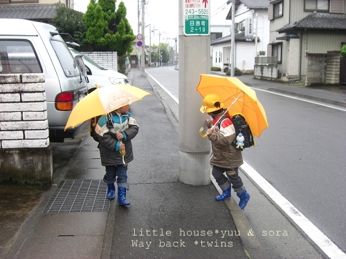 little house*■双子とお兄ちゃんの暮らし■ のんびりゆっくり気ままなフォト日記・・・*PAGE | 424 423 422 421 420 419 418 417 416 415 414 | ADMIN | WRITE 2010.04.24 Sat 20:14:13 ■ 入院とはじめての参観日… ■・・・・・・・・・・・・・・・・・・・・・* ■カメラ■casio EXILM(コンデジです) お兄ちゃん(たかちゃん)が入院して4日がたちました。 ●少し元気になったよ~●(たかちゃん) 一昨日、お腹がまた痛むというので、レントゲンを撮ってみると お腹の中の炎症がまた起きてしまって… また少し具合が悪くなってしまったお兄ちゃん(たかちゃん)でした。 食事なしの点滴の日々でしたが… ●点滴してるよー● 今日(24日)ようやく体調も落ち着き… 傷の痛みも軽くなったので久し振りに食事をすることが出来ました。 『お腹すいたー』と言っていたお兄ちゃん(たかちゃん)は、 待ってました~♪という感じでパクパクお粥さんを食べてくれました。 このままどんどん回復してくれるといいのですが… 今日は、点滴と一緒に院内をお散歩しました~♪ たかちゃん、早く元気になってね! そして昨日は… ゆうとそらの初めての参観日がありました。 ゆうとそらのクラスを行ったり来たり… そして一応… お兄ちゃんのクラス(4年生)も見に行ってみたりしました。 あっち行ったりこっち行ったり… 正直、ゆっくり子供たちの様子を見ることもできず…(T_T)でしたが、 子沢山のご家庭のご両親は、もっともっと大変なんだろうな~と 思ったりもして… どこのお家のお父さんもお母さんもみんな頑張っているんだな~っと 改めて思う参観日でした。 初めての参観日は、ゆうもそらも同じ『国語』の時間でした。 ●本を読んだよー● ●ひらがなを練習したよー● どちらのクラスも同時内容ではありましたが… 先生のやり方はそれぞれなので戸惑いもありましたが… それはそれで楽しい時間でもありました♪ ●そらちゃんのクラス● ●ゆうちゃんのクラス● 帰りのお支度も出来て… これからお兄ちゃんの病院へ行くよ♪ この日は雨。 帰り道の二人… もう、すっかり…二人は一年生* ●そらちゃん● ●ゆうちゃん● 車に気をつけて寄り道しないで帰ろうね~♪ お兄ちゃん(たかちゃん)が、入院して、 二人にとって、お兄ちゃんのいない生活はやっぱり寂しいんです。 お兄ちゃんが大変な時は、二人で力を合わせて頑張ってくれています。 兄弟っていいな… 家族っていいな… お兄ちゃんの入院で改めてそう思えるのでした。 ■・・………………………………………■ ●お知らせ● ■・・………………………………………■ さて… 久し振りに ■little house*■から感謝をこめて… プレゼント企画をしたいと思います。 プレゼントの内容は… 届いてからのお楽しみです♪ 参加希望の方は… ●お名前 ●ハンドルネーム ●メールアドレス ●HP(お持ちの方) ●(〒)住所 ◆そのほか…何かメッセージでも頂ければ嬉しいです…◆ …以上を明記の上、こちらまで送ってくださいね* ◆お便りメールはこちらからどうぞ◆ ↓ ↓ ↓ ![]() お待ちしていますね* (はじめましての方でおokですよー) ■・・………………………………………■ *………………………* 日記がおもしろかったら・・ポチッと押して頂けると嬉しいです* ■ありがとうございます■ ↓ ポチッ *・・・・・・・・・・・・・・・・・・・・・・・・* PR Comments無題Posted by きゅーこ 2010/04/25(Sun) 14:54:40 EDIT ご無沙汰してます。