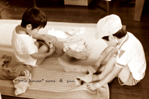 little house*■双子とお兄ちゃんの暮らし■ のんびりゆっくり気ままなフォト日記・・・*PAGE | 221 220 219 218 217 215 214 213 212 211 210 | ADMIN | WRITE 2009.05.29 Fri 12:30:11 ■ 双子・・・* ■・・・・・・・・・・・・・・・・・・・・・* 今日は、朝から雨ですね・・・。 何だか肌寒くて、なかなか衣替えが出来ませんね。 ベランダの秋アジサイ・・・ 色づき始めてきました。 ブルーとピンクの秋アジサイを一緒に植えているのですが・・・ 何だか今の所、紫色ですね。 これから、素敵に変身するのかな? 今年もあきアジサイのドライを沢山作ろうと思ってます。 楽しみ* *・・・・・・・・・・・・・・・・* そして・・・ ふたご達は、先日幼稚園で玉ねぎ堀のイベントがありました。 この玉ねぎ堀を楽しみにしていたゆうとそら。 ゆう&そら:『ママ~♪大きいの採って来るからね!』 そう言って幼稚園へ行きました。 朝は、いつもバタバタと子供たちはお着替えをしています。 母:『今日は幼稚園の園服じゃないよ~♪ 体操着と長靴はいていくんだよぉ~♪』 ゆう&そら『やった~!』(←同時にめちゃくちゃ喜ぶ二人・・・) 【↑さすが双子です】 そして、張り切って着替えをする二人なのでした・・・ おパンツ丸出しです(汗)"( ̄о ̄)あら~っ いつもは、のんびりなゆうちゃん・・・ なぜか今日ばかりは違ってました。 は・・・っ。 早・・・っ。 ゆうちゃん、すごいね~♪ ・・・っで、そらちゃんはどうしたかな? ●靴下に悪戦苦闘中のそら● 母:『そらちゃん、頑張ってね~♪』 そら:『うん!』 早く着替えを済ませてしまったゆうちゃんは、 ちょっと退屈だったようで・・・( ̄з ̄)フフフ・・・ なんと、そらちゃんの帽子を被せてあげていました。 あらま~♪ ゆうちゃんたら・・・ やっ・・・優しいじゃないの~!( ̄▽ ̄)ニンマリッ そしてようやくお着替え完了☆ (お疲れ様・・・) いつもよりもちょっぴり早くお支度が済んだので、 ちょこっとだけ記念撮影*(←ハテ??何の記念じゃ?) ☆パチリ☆ ●かっこいいポーズして・・・っと言ったらこうなりました● ●これもかっこいいポーズなんだとか・・・● ●ゆうちゃん、転んで出来た傷を見せてくれる● ●痛々しいのだ● 【one point!】 (我が家では、小さな傷には・・・お家で採れたどくだみの葉をすりつぶして塗ります) ●ニューハーフのマネをして迫るそら● ●いつもこんなんですが、仲良しです● それでは・・・ お二人さん、玉ねぎ堀を楽しんできてね~♪ そして幼稚園から帰ったお二人さん・・・ お二人さんは、すごーーく嬉しそうな顔をして 特大の玉ねぎをそれぞれ5個づつ【計10個】 持って帰ってきてくれました~♪ 美味しくみんなで食べようね* ・・・・・・・・・・・・・・・・・・・・・・・・・・・* 日記がおもしろかったら・・ポチッと押して頂けると嬉しいです* ぜひ!応援!!宜しくお願いします* ↓ ポチッ ●ランキング3ポチっ・・・とよろしくお願いします● ◆お問合せ&お便りメールはこちらからどうぞ◆ ![]() PR CommentsComment Form |