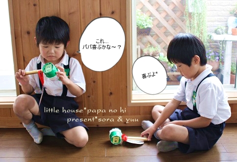 little house*■双子とお兄ちゃんの暮らし■ のんびりゆっくり気ままなフォト日記・・・*PAGE | 240 239 238 237 236 235 234 233 232 231 230 | ADMIN | WRITE 2009.06.21 Sun 15:06:29 ■ちちのひ・・・*■・・・・・・・・・・・・・・・・・・・・・* 今週・・・ 金曜日(6/19)は、学校の参観日。 土曜日(6/20)は、幼稚園の参観日があったので、 今週末はバタバタしていました。(汗)" そして今日は、父の日ですね。 朝から大雨・・・( ̄о ̄)憂鬱だわ~ 父の日の贈り物・・・ 子供たちと私から・・・っと言う事で、 パパには、夏用のサンダルを買ってあげました。 そして・・・ ゆうとそらは、幼稚園でパパの為に 可愛い贈り物を作ってきてくれました。 ●父の日の贈り物・・・● 左・・・ゆうちゃん作。 右・・・そらちゃん作です。 パパの似顔絵が何だかほのぼのしていて 可愛らしいかったです* 裏にはメッセージが添えてありました。 ジーーーン。 ●ゆうちゃん● ●そらちゃん● そしてコレは何に使うものかと申しますと・・・ 肩たたきなんだとか・・・(汗)" なるほど! そらちゃんが、 こんな風にして使うんだよ・・・っと実演してくれました。 ●実演中のそらちゃん● トントントン・・・ 大丈夫・・・ きっと喜んでくれるでしょう♪(^-^)/ ●ゆうちゃんも実演中● トントントン・・・ ●自分の作品に大満足のゆうちゃん● うん! 喜ぶぞ~♪ ・・・・・・・・・・・・・・・・・・・・・・・・・・・* 日記がおもしろかったら・・ポチッと押して頂けると嬉しいです* ぜひ!応援!!宜しくお願いします* ↓ ポチッ ●ランキング3ポチっ・・・とよろしくお願いします● ◆お問合せ&お便りメールはこちらからどうぞ◆ ![]() PR CommentsComment Form |