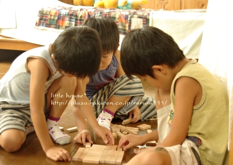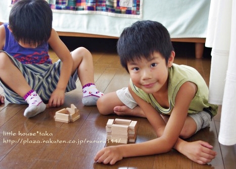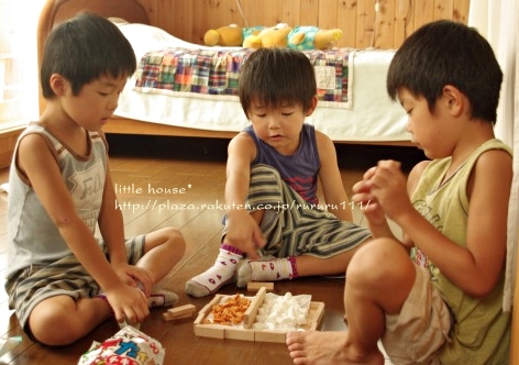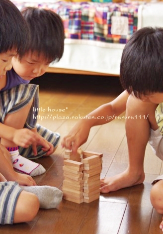 little house*■双子とお兄ちゃんの暮らし■ のんびりゆっくり気ままなフォト日記・・・*PAGE | 289 288 287 286 285 284 283 282 281 280 279 | ADMIN | WRITE 2009.08.31 Mon 12:23:05 ■ジェンガ?? & カウプレ・・・*■カメラ:k-m・・・・・・・・・・・・・・・・・・・・・* 今日は・・・ 台風が来ているので朝から大粒の雨です。 お兄ちゃん、学校へ行く時長靴を履いていくように勧めたのですが・・・ 靴で行く!!! っと言って聞かないので靴を履いて登校してしまいました。 帰りは、お兄ちゃんのお気に入りの靴もビッショリだろうなぁ~・・・ 昨日は、家族揃って・・・ 子供達と選挙の投票へ行ってきました。 これからの日本が子供達にとってより良くなってくれる事を 願うばかりです・・ *・・・・・・・・・・・・・・・・・・* ある日・・・ 子供達が、静かに遊んでいました。 (わ~珍しい・・・) ●静か過ぎる3人・・・● みんなでジェンガを出して遊んでいたんです。 無言で・・・ 何だか・・・ 真剣な3人でした。 でも・・・ 良く見て見ると? あれ? やり方が違うような... しかも何か入れて遊んでる。 ●じーーーーっ● でも、ま~ みんな静かだし・・・ 静かなうちに・・・ お洗濯ものでもしてきましょ。。。 ・・・っと、 少しの間ここを離れて、また戻ってきてみると・・・ ん? んん? ●並べるよ~● 今度はひたすら並べて何かを作っていました。 今度はなんだろうな? 子供達のやる事を遠くから見ていたら・・・ がさがさ・・・ ごそごそ・・・ お菓子の袋を開ける音・・・ え?? なに? ●ジャジャ~~~~~ン● すごい。 お皿になっている。 しかも・・・ 上手いこと仕切りまでついてるわ。 それに、汚れないように テッシュまで、敷いてあるよ・・・( ̄▽ ̄)"へ~ ●ママ、美味しいよ● そっ・・・ そうですか。 嬉しそうなお二人さんでした。 ジェンガが・・・ こんな事にもなるとは、想像が付くはずもなく・・・ ただただ驚くばかりの母なのでした。 お菓子を食べて満足なお2人・・・ ●シュワッチ●(ゆうちゃん) ●ニコニコなそらちゃん● 以前、クレーンゲームで取ったリラクマちゃんは・・・ まだまだ2人のお気に入りです。 ・・・・・・・・・・・・・・・・・・・・・・・・・・* 日記がおもしろかったら・・ポチッと押して頂けると嬉しいです* ぜひ!応援!!宜しくお願いします* ↓ ポチッ ●こちらのランキングも2ポチッと・・・よろしくお願いします● *・・・・・・・・・・・・・・・・・・・・・・・・*