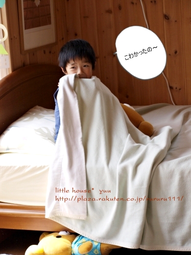 little house*■双子とお兄ちゃんの暮らし■ のんびりゆっくり気ままなフォト日記・・・*PAGE | 291 290 289 288 287 286 285 284 283 282 281 | ADMIN | WRITE 2009.09.02 Wed 11:25:45 ■怖いもの見たさ・・・■・・・・・・・・・・・・・・・・・・・・・* お家で育てているキューリさんが 美味しそうに育ってくれました。 二株買って、もう何十本と収穫できているので、 しっかり元は取れちゃった感じですぞ。 ●キューリ● (カメラ:E-520) しかも無農薬・・・栄養満点です!! 子供達は、冷たく冷やしたキュ-リを丸かじりして ポリポリ食べるのが好きなんです。 *・・・・・・・・・・・・・・・・・・・・・* この前、子供達とツ○ヤでDVDをレンタルしてきました。 その中の1本は・・・怖いDVDでした。 もちろん、子供が見たいといって選んで借りてきたものです。 母:『いつも・・・怖い怖いって言うんだから、止めたら??』 ・・・っと私が言っても 『見る~~~~~っ!!』っと言って 聞かないので、借りてきたんです。 とりあえず・・・ 夜見るのはさすがに怖いので・・・ 幼稚園から帰ってきてすぐの2人・・・ 怖そうなオープニングが始まって・・・ なんだか落ち着かないお二人さん・・・ そのうち・・・ わ~~~~っ(>_<)(ゆう) きゃ~~~っ(>_<)(そら) っと言いながらこの様子。 ●怖すぎて目を隠すゆうちゃん● でも・・・ ●怖いけど・・・見たい● 一方、怖がりなそらちゃんは・・・ ●見てない● ずっとこんな調子でございます。 母:『だからよせばいいのに・・・』(ボソッ・・・) 結局2人とも目隠ししたり、チラ見したりしながら・・・ 最後まで見てたんです。(笑) DVDが終わると・・・ そらちゃんは、私にべったり・・・引っ付いてきまして・・・ ゆうちゃんは、サササ~~~~~~ッと ベットの中へ隠れていました。 ●ベットに隠れるゆうちゃん● 母:『ゆうちゃ~ん、お化けもういないから・・・大丈夫だよ=3』 ゆう:『お化け・・・いない?』 そう言いながら、恐る恐るお布団の中から顔を出してくれました。 私も子供の頃、こんな感じだったな~♪ 怖いけど...見てみたくなるんですよね。 ・・・・・・・・・・・・・・・・・・・・・・・・・・* 日記がおもしろかったら・・ポチッと押して頂けると嬉しいです* ぜひ!応援!!宜しくお願いします* ↓ ポチッ ●こちらのランキングも2ポチッと・・・よろしくお願いします● *・・・・・・・・・・・・・・・・・・・・・・・・*