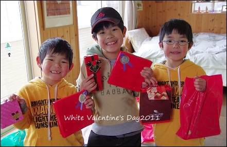 little house*■双子とお兄ちゃんの暮らし■ のんびりゆっくり気ままなフォト日記・・・*PAGE | 6 7 8 9 10 11 12 13 14 15 16 | ADMIN | WRITE 2011.02.17 Thu 23:52:53 ■☆・。・ ホワイトバレンタイン・だったあの日・。・☆■(コメントのお返事させて頂きました~♪) バレンタインの日の事を少し… 子供たちは学校から帰ってくるなり… 『チョコどこかな~?』…っと、 そわそわしていました。(可愛い・・・) 家族からは… ●ちょっとリッチ~● こんなのも・・・ すでにチョコだらけな子供たちでした・・・。 ●嬉しそうな3兄弟● お兄ちゃんのたかちゃんは… 『僕はモテなから、女の子からチョコはもらえないよ…』 なんて… ボソッと話していたんですが… 大好きな同級生のMちゃんとcちゃんから 可愛い手作りのチョコが届きました~♪ ●わぉ~♪● おんなのこですね~♪ ●可愛すぎます● 私も子供のころ… 好きな男の子に手作りチョコを作って渡そうとした事あったな~♪ (中学生のころだったんですけどね・・・)(恥ずかしい) …あっ。 ちなみに…papaじゃないですよ~(>_<)"すまん。 *…........... ここからは、余談です ............…* (スル~しちゃてもok!で~す。↓) そうそう。私が中学2年生の時だったかな~?(懐かしいわ~) すごくドキドキしながら… 手作りチョコを学校のカバンに入れて・・・ 放課後渡すぞ!!っと気合を入れていたまではよかったんですが… 放課後…仲良しのお友達に 『お願い! ●●君にチョコ渡したいから、一緒に来てくれない?』 っと お願いされてたんです・・・。 (T_T)え”~~~~~~~~~っ それが・・ その・・・ ●●君…って言うのが、私の好きだった人でして…。 しかも仲良しの友達に…(Y_Y) どっちも失えなかったので…(大人な私。) 友達に付き合ってあげましたよ…私。 その後、彼女と●●君はどうなったのかは???ですけどね。(笑) 私の手作りチョコは… しんみりと一人で食べまして・・・。(ハイッ!) …っとま~♪ 私のある日の失恋??話でした。 *……………………………*(余談…以上でした)チャン!チャン! さてさて、子供たち。 可愛いチョコレートをたくさんもらって、バレンタインデーは チョコパーティーになりました。 ●嬉しいゆうちゃん● ●嬉しいそらちゃん● ●ちょこっと照れてたお兄ちゃん● そして… 『勿体な~い!』っとか言いながらも。 パクパク食べていた3兄弟。 ●ココアだらけのお兄ちゃん● ●味わうゆうちゃん● ●思いっきりぱくつくそらちゃん● …そして、ママはみているだけ~♪ ( ̄ε ̄)味見は…? そして・・ ゆうとそらのお友達(同級生*1年生)の、 いつも仲よくしてくれている Aちゃんからも可愛いバレンタインを頂きました。 ●1年生が作ったと思えません!!!● ●見事な出来栄え☆●(パチパチパチ) Aちゃんは、ママがいません。 だけど、いつもニコニコ笑ってくれます。(^-^) 私は、本当のママにはなれないけれど・・・ Aちゃんの成長を我が子と一緒に見守って行こうと決めています。 それは、病気で他界したAちゃんのママとの約束なんです。 Aちゃんには弟くんもいるので… 私は5人の子供のお母さん気分ですよ~♪(たのし~♪) 人生は、山あり谷あり・・。 だからこそ、助け合って生きて行かなくちゃ…ですものね。 頑張ろう。私・・・。 そうそう、Aちゃんにこんなものを作ってあげました。 ●羊毛ワンコ● ●ラブ注入~です● ●Aちゃんをイメージしてマスコットを・・・● 喜んでくれたかな? 夜は、雪になりました。 ものすごい勢いで降り積もって・・・ いつの間にか、ホワイトバレンタインになってました。 寒いけど… 心が温かな1日でした。 ●雪を写真に撮るお兄ちゃんとゆう● shopの準備もぼちぼち…です。 ●こんなの・・・や● ●こんなのや・・・● ●こんなものもまた作ってみました● 地味な作業だけど、楽しいです。 (camera = pentax k-m ) *………………………* ■ 最後まで読んでくれて、ありがとう ■ ポチッ ![]() ↑ ↑ ↑ 日記がおもしろかったらポチッと押して頂けると嬉しいです* ■ ■ コメントはこちらへどうぞ ■ ■ ↓ ↓ ↓ PR |