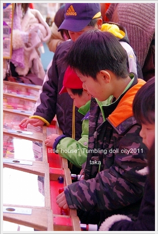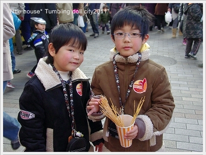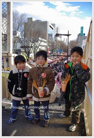 little house*■双子とお兄ちゃんの暮らし■ のんびりゆっくり気ままなフォト日記・・・*PAGE | 15 16 17 18 19 20 21 22 23 24 25 | ADMIN | WRITE 2011.01.09 Sun 23:11:01 ■ ☆・。・ だるま市 ・。・☆ ■ 前篇今日は、地元のお祭りで初市(だるま市)があったので、 子供たちと一緒に出掛けてきました。 まずは、おやつを買って・・・ ●どれにしようかな~?(←悩んでます) 色んな屋台のお店があって・・・ にぎやかな、お祭りの雰囲気を楽しみました。 歩道橋があったので、登ってっました。 上まで登ったら、とっても見晴らしがよくて、 高いとこがちょっと怖かったらしく… でも、高い所から見るお祭りの景色は、 すごいな~ 歩道橋を降りて・・・ 子供たちはお小遣いで何か買う事にしました。 お祭りの時は、必ずと言っていいほど… ・。・☆いい事いっぱいありますように…☆・。・