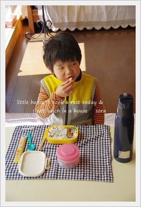 一日も早い復興を願いたいです。 我が家のそらちゃん。 少し前…ダウンしていました。 たぶん風邪だったのだろうと思いますが、 疲れもあったんでしょうね。 体休めの為にも1日学校をお休みさせました。 (流行りつつある…インフルエンザじゃなくて良かったです。) ●つまんないな~● 物不足の為に… しばらくお弁当もちだった学校生活。 この日もお弁当を準備していました。 学校に持っていくはずだったけど… 今日はお家でお弁当を食べました。 ●おいしいー● モグモグ… パクパク… お陰様で… 今では、もうすっかり元気です。 もうすぐ… 卒業式に春休み。 お家で少しでも家族の時間を楽しみたいです。 今夜は… 計画停電。 夜の停電は2回目になりますが、 子供たちは星を眺めたり、暗闇で遊んだりと・・・ それはそれで楽しいみたいです。 キャンドルナイトも素敵な時間に思えます。 …そうそう。 子供たちが作ってくれたもの。 ママの顔なんだそうな…(笑)( ̄ε ̄)””プププ… そして私が作ったもの。 可愛いのが出来て良かったです。 (camera = pentax k-m ) *………………………* ■ 最後まで読んでくれて、ありがとう ■ ポチッ ![]() ↑ ↑ ↑ 日記がおもしろかったらポチッと押して頂けると嬉しいです* ■ ■ コメントはこちらへどうぞ ■ ■ ↓ ↓ ↓ PR |