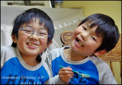 little house*■双子とお兄ちゃんの暮らし■ のんびりゆっくり気ままなフォト日記・・・*PAGE | 4 5 6 7 8 9 10 11 12 13 14 | ADMIN | WRITE 2011.03.01 Tue 23:05:13 ■☆・。・ おばあちゃんのお誕生日・。・☆■2/27は、(私の母)おばあちゃんの63回目の誕生日でした。 子供たちが大好きなkおばあちゃん。 ●そら&k● ●ゆう&k● ●たか&k● (私の母)kおばあちゃんは、子供たちが生まれた時から… このお家でずっと一緒に暮らしています。 だから、子供たちにとってもkおばあちゃんは… とても大切な大切な存在なんです。 大好きなkおばあちゃんの為に・・・ 子供たちは… お手紙を書いたり、プレゼントを考えたり・・・ 子供たちなりの優しい気持ちがいっぱい詰まった 優しい贈り物を送りました…。 ●喜んでくれたかな?● …。あっ。 嬉しそうだ。(^-^) ●あはは…● ...子供たちの誤字脱字いっぱいの可愛いお手紙に 大ウケしてくれたkおばあちゃんでした。(笑) 63歳分のロウソクを立てて… ●いい事いっぱいありますように…フ~ッ● いくつになってもこうして家族みんなでお誕生日を お祝いできるのっていいものです。 大好きなイチゴのケーキをパクパクと・・・。 ●ゆうちゃん● ●そらちゃん● ●ペロッ…と、ゆうちゃん● ●お兄ちゃんも・・・● あ~…最近、すっかりお兄ちゃんです。 最後は、双子のツーショット!!! ●おしまい!● チャン!チャン! (camera = pentax k-m ) *………………………* ■ 最後まで読んでくれて、ありがとう ■ ポチッ ![]() ↑ ↑ ↑ 日記がおもしろかったらポチッと押して頂けると嬉しいです* ■ ■ コメントはこちらへどうぞ ■ ■ ↓ ↓ ↓ PR |