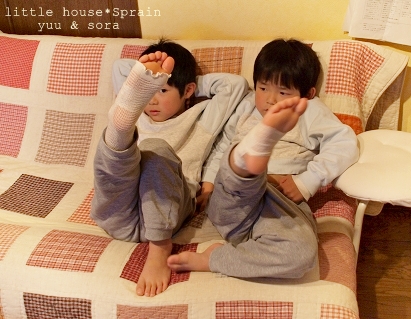little house*■双子とお兄ちゃんの暮らし■ のんびりゆっくり気ままなフォト日記・・・*PAGE | 132 133 134 135 136 137 138 139 140 141 142 | ADMIN | WRITE 2010.04.29 Thu 13:14:27 ■ 同じタイミングで… ■・・・・・・・・・・・・・・・・・・・・・* 昨日は、子供たちの学校の家庭訪問がありました。 ゆうとそらは、初めての家庭訪問でした。 同じ日に続き時間の3人分の家庭訪問だったので、 なんだか流れ作業的な感じで大忙しでした。(汗)” ま~いっぺんで済んだから良しとしよう!! 子供たちは、学校で頑張ってくれているとのことで ひとまずは安心した私ですが… 1つ問題が… お兄ちゃん(たかちゃん)の入院の間に(1週間の入院) 学校の勉強がとっても進んでしまっていたこと。 4年生にもなると日々すごいペースで勉強が進んでいるので 入院していた7日間ブランクの大きさに 私もお兄ちゃん(たかちゃん)もとても焦りました。 それでも、お兄ちゃん(たかちゃん)は、入院中 少しでも遅れないようにと出されていた宿題は頑張っていたんです。 30日から学校に行き始めるお兄ちゃん(たかちゃん)。 このゴールデンウィーク中は、遠くには行けそうもないので しっかりお勉強しておこうと決めました。(がんばるぞ~!) 30日退院後初めての登校日の日… さっそく、漢字テストが…(T_T)やッ…やばい! 今日は、猛特訓して頑張ります! *・…………………………* 双子たち。 先日… 合気道から帰ってくると… 同じタイミングで… 同じ足に… 同じく捻挫をしてきました。 ●双子の不思議だねー● こういうこともあるのですね…(驚!) ●見てみてー!同じ足だよ~● ●合体!● 捻挫をしたので・・ 湿布を貼って包帯を巻いてあげました。 日頃、なかなか包帯なんて巻くことがないので ちょっぴり嬉しいお二人さん…♪ ●包帯♪包帯…♪● 二人は、いつもこうやって… ひっついて、絡み合ってテレビを見ています。 ●仲がいいのね~♪● でも… 『お二人さん、たまには離れてテレビみたら…?』…っと 声をかけたら… ズルズルズル~~~~~っ ●へそ出てる…● …あ~言わなきゃ良かった…(V_V*)" タラ~ッ ■・・………………………………………■ ●お知らせ● ■・・………………………………………■ さて… 久し振りに ■little house*■から感謝をこめて… プレゼント企画をしたいと思います。 プレゼントの内容は… 届いてからのお楽しみです♪ 参加希望の方は… ●お名前 ●ハンドルネーム ●メールアドレス ●HP(お持ちの方) ●(〒)住所 ◆そのほか…何かメッセージでも頂ければ嬉しいです…◆ …以上を明記の上、こちらまで送ってくださいね* ◆お便りメールはこちらからどうぞ◆ ↓ ↓ ↓ ![]() お待ちしていますね* (はじめましての方でおokですよー) ■・・………………………………………■ *………………………* 日記がおもしろかったら・・ポチッと押して頂けると嬉しいです* ■ありがとうございます■ ↓ ポチッ *・・・・・・・・・・・・・・・・・・・・・・・・* PR |