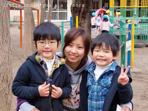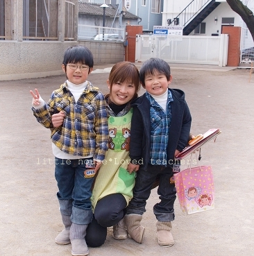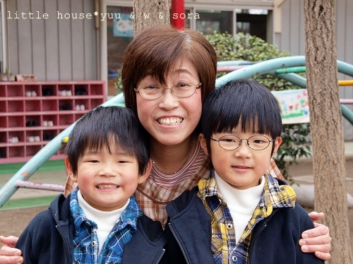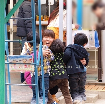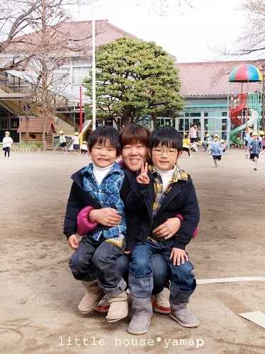 little house*■双子とお兄ちゃんの暮らし■ のんびりゆっくり気ままなフォト日記・・・*PAGE | 150 151 152 153 154 155 156 157 158 159 160 | ADMIN | WRITE 2010.03.30 Tue 11:20:31 ■ 会えたね…* ■・・・・・・・・・・・・・・・・・・・・・* 先日に日記の続きです。 朝の送迎をしていた元年長さんの先生たちが… ようやく戻ってきました。 あーーー!! 先生だ!!! ゆうちゃんも、そらちゃんも 先生の所に走って行きました。 ●嬉しい~♪● ●むぎゅ~*● ゆうちゃんとそらちゃんと先生と3人で最後の記念撮影。 これが本当に最後の記念撮影になるのかな~?(T_T) ●嬉しい一時…*● ●先生とハート…*● お友達にも久し振りに再会出来ました。 ●ゆうちゃん、そらちゃん、Yちゃん● いつも一緒に遊んだよね… 他にも色んな先生たちと一緒に記念撮影* ●I先生と● みんなで一緒~♪ ●ピースピース● ●s先生と…● ●n先生と…● ●a先生と…● ●w先生と…● ●そらちゃんの大好きなo先生と…● 先生にみんなでハグ*ハグ… いっぱい写真を撮った後は… ジャングルジムで遊びました。 ●へそ出しマン…●(ゆう) そらちゃんは、鉄棒してあそびました。 ここの幼稚園は木登り出る木があるので… みんなここで木登りが楽しめます。 ●ちゃんと靴を脱いで…●(ブーツがそろってる…) 高いところでも へっちゃらだよ・・・・ たのしいー♪ ●そら● 朝の少しの時間だったけど… そらちゃんにとってこの時間はずっと忘れることのできない 大切な時間になったんじゃないかな?って思います。 今度は… 先生たちにランドセル姿を見せに行こうね~♪ 先生方、本当に長い間ありがとうございました。 *………………………* 日記がおもしろかったら・・ポチッと押して頂けると嬉しいです* ■ありがとうございます■ ↓ ポチッ *・・・・・・・・・・・・・・・・・・・・・・・・* PR |