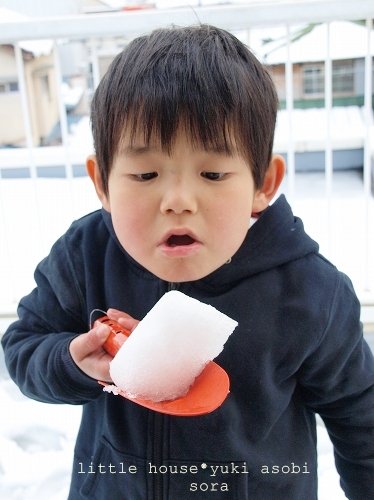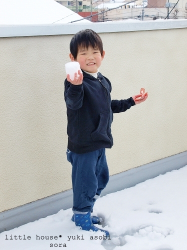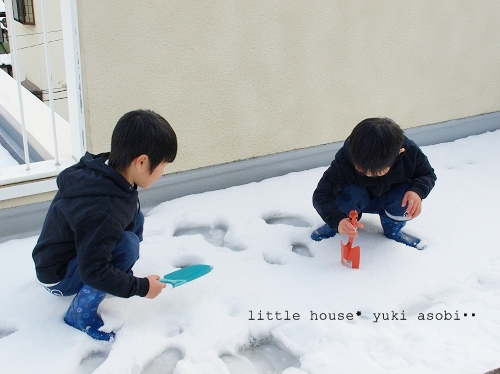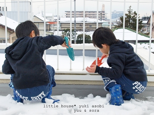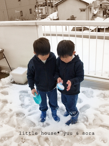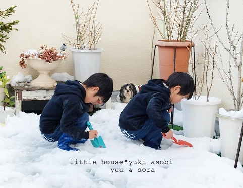little house*■双子とお兄ちゃんの暮らし■ のんびりゆっくり気ままなフォト日記・・・*PAGE | 159 160 161 162 163 164 165 166 167 168 169 | ADMIN | WRITE 2010.03.11 Thu 11:35:11 ■ 冷たくても楽しい~♪ ■・・・・・・・・・・・・・・・・・・・・・* 雪が降った後のキーンっと冷え切った空気は とても透き通って見えます。 久し振りの大雪。 幼稚園から帰ってきたゆうとそらは… ふわふわの雪が残っていた屋上へ長靴を持って上がって行きました。 あっ… スコップも持ってた。(準備がいいな~) ●冷たいねぇ~● スコップをうまく使って、型抜きをして遊んでいます。 ●ぼくもできたよ・・・● ●見て~!大きいの出来た!● そして… スコップで線を引いてみたり… 柵の向こう側の雪を取ってみたり… 二人はなかよく雪遊びを楽しむのでした。 ●何をしているの~?● ●えへへ・・●(ゆうちゃん) ●ママー見て!● ん? 雪? ●これ、食べちゃうぞ~!●(←ダメダメダメ…)”” 『ママ、冗談だよ…』っとゆうちゃんでした。(ハイッ!) (だって~、本当に食べちゃいそうな勢いだったんですもの…)ボソッ そらちゃんもまた大きなかたまりを作っていました。 ●できた! できた!●(そら) ●すごいでしょう~♪● ●冷たい。。。● ●わぁ~…● …冷たくて落っことしちゃったそらちゃんでした。 だんだん… 寒くなってきたので、『そろそろお家に入ろう!』…っと 声をかけてみたけれど… 二人は、黙々とあそんでいました。 寒くないのかな~? *………………………* 日記がおもしろかったら・・ポチッと押して頂けると嬉しいです* ■ありがとうございます■ ↓ ポチッ *・・・・・・・・・・・・・・・・・・・・・・・・* PR |