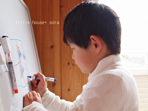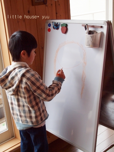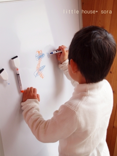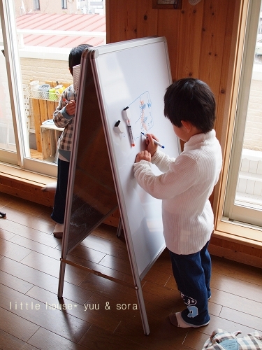 little house*■双子とお兄ちゃんの暮らし■ のんびりゆっくり気ままなフォト日記・・・*PAGE | 162 163 164 165 166 167 168 169 170 171 172 | ADMIN | WRITE 2010.03.07 Sun 00:39:01 ■ お絵かきボード…* ■・・・・・・・・・・・・・・・・・・・・・* 以前… ものすごーーーーーく大きな ホワイトボード&黒板を持っていたのですが… あんまりにも大きかったので、泣く泣く処分してしまって以来・・ ここ最近また、『ホワイトボードが欲しい!』と言い始めたフタゴ達。 お部屋スッキリ計画を実行中の私としては… あんまり物を増やしたくない!というのが正直なところでしたが… 子供が自由に大きな絵を描くことは、決して悪いことではないので 色々とホワイトボードを探していたら… こんなものもを見つけたんです。 ●二人で仲良く描けるよ~♪● このホワイトボードは、両面書きが出来て、しかも折りたたみ付! 我が家にぴったりのホワイトボードでした。 しかも自立できるのが嬉しいです! なかなかこういうタイプのものは、 ホームセンターにも売っていないので、オークションで購入しました。 お値段もリーズナブル*でした。(嬉) 幼稚園から帰ると毎日ホワイトボードに向かってます… ●真剣●(そらちゃん) ●こちらも真剣●(ゆうちゃん) 何を描いているの~? ん?! なんだろな~? ゆうちゃんは… 何書いているのかしらん? ●顔らしきものが…● え~? もしかしたら…? ママ?かしら…・ ●ピンポーン!●(正解!) まぁ~♪嬉しいわ。 ゆうちゃん、ありがとう! ●うっ…うん*● …何だか照れてたゆうちゃんでした。 そういえば…? ゆうちゃん、メガネ! メガネ! あっ…。(←ゆうちゃんは、すぐメガネを忘れます) *………………………* 日記がおもしろかったら・・ポチッと押して頂けると嬉しいです* ■ありがとうございます■ ↓ ポチッ *・・・・・・・・・・・・・・・・・・・・・・・・* PR |
