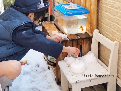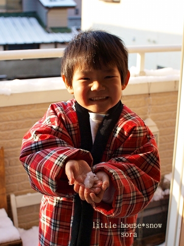 little house*■双子とお兄ちゃんの暮らし■ のんびりゆっくり気ままなフォト日記・・・*PAGE | 177 178 179 180 181 182 183 184 185 186 187 | ADMIN | WRITE 2010.02.03 Wed 23:53:41 ■ 寒い日*雪の日…■・・・・・・・・・・・・・・・・・・・・・* 2月に入って初雪が降りました。 子供たちは何年かぶりに雪を見たんじゃないかな~? すごくすごくうれしそうでした。 (ぁ…私も。) 電線も凍りついていたのにはびっくり… 寒いわけだ・・ ●窓を開けてみたら、眩しいね~♪● 雪を触ってみる… ●うひゃ~冷たいね…● ぼくはこれで… ゆうちゃんも遊んでみた。 ●冷たいよ~● 何だかんだしてるうちに… 幼稚園の準備をする時間になってしまったので… 着替えを済ませたら、また遊んでいたお二人さんでした。 この日は、幼稚園バスが1時間遅れでお迎えになってしまったので ゆっくり、ゆっくりあそべるのでした。 ●大もりいっちょう!● ●お料理中の人● 二人で何か作り始めていました。 ●かき氷?● ●スポッ● ん? なんだ~? ●雪のケーキを作っているんだって…● まあ~♪可愛いじゃない! 見ている方が寒そうですが… お二人さんはひたすら作り続けていました。 ●何だか、すごい格好です● ●ギュッギュ~~~っとね● ベランダにもかなり積っていたので… 一見… メルヘンチック。 寒いのでお部屋の中にいた金魚ちゃんを少し外に出して… 雪を見せてあげました。 ●金魚『これが、雪なのね~』● そして最後にゆうちゃんが作ったもの…は。 小さな小さな、雪だるま。 お目目とお口は、いつの間にかもぎ取られていた… グリーンネックレス・・・(T_T) でも、可愛いので良しとしよう! ゆうちゃんはかなりのこだわり屋さんなので… 丁寧に丁寧に作っていました。 あら? どこから持ってきたのかしら? アルミのカップを帽子にしちゃってるわ。 ちなみにこちらは私の雪だるまん! ↓ …ゆうちゃんに負けた。(>_<)” …続く… *………………………* 日記がおもしろかったら・・ポチッと押して頂けると嬉しいです* ■ありがとうございます■ ↓ ポチッ *・・・・・・・・・・・・・・・・・・・・・・・・* PR |