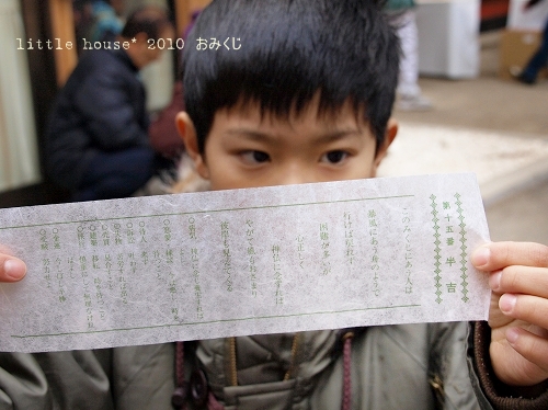 little house*■双子とお兄ちゃんの暮らし■ のんびりゆっくり気ままなフォト日記・・・*PAGE | 189 190 191 192 193 194 195 196 197 198 199 | ADMIN | WRITE 2010.01.09 Sat 21:29:45 ■ 初詣に行って・・* ■・・・・・・・・・・・・・・・・・・・・・* 1月3日… 毎年出掛けている神社まで 初詣に行ってきました。 ●初詣● この日は、あまり北風は冷たくなかったけれど… やっぱり寒かったー。 ●寒そうな空・・● この3日の間に… 沢山の人が初詣に来たんだろうな~ ●すごい数のおみくじでした● 今年もしっかりとお願い事をしなくちゃね! 順番を待つ間に… ●手を清めました● う~~~っ… 寒い*寒い* またまた… 順番を待つ間に… お賽銭を準備しておきました。 (自分のおこずかいの中から出します) ●僕はポケットの中に準備したよ~● …っとお兄ちゃん。 ●僕は…(25円)これだよ● …っとそらちゃん。 ●僕はメガネ~●(笑) …っとゆうちゃんも25円を準備していました。 なぜ25円??? それは… 二重に素敵な御縁があるように…☆と言う願いを込めてでした。 長い列の順番を待ってやっと僕たちの番が来ました。 ぎゅっと握っていて、温かくなっていたお金を お賽銭箱へ入れて鐘を鳴らしました。(から~ん から~ん) ●お願い事したよ● しっかりお願い事をした3人… みんな… 『家族が病気しないで幸せに過ごせますように…』って お願いしたんだって…(ウルウル) 本当にみんないい子たち。 お母さんは…ジ------------ンとしてしまいました。 そして… おみくじを引きました。 みんなのおみくじは何が出たかな? まずは…パパ。 ●小吉でした● …ん~まずまずかな? 続いて…お兄ちゃん。 ●半吉でした● …?ん?半吉? なんか…微妙な結果だわ・・(汗)” 半吉なんていうのもあるんだね~… そして…フタゴたちは。 そらちゃん… ●吉でした● ゆうちゃんも… ●吉でした~● さすが… ふ・た・ご* そして… 最後に私ですが・・ わわわわ…っ!! ●大吉~♪● う・・嬉しいです。 でも…いいことばかり書いてあったので、逆に怖いなぁ~。(´Д´)” 帰り道は… 出店でちょこっとおやつを買いました。 僕は…大好きな焼きまんじゅう~♪ ●美味しい!● ●あ~~~ん● ●パクッ● 僕たちは… 落書きせんべい。 ●初めて落書きせんべいをかうゆうとたか● シロップを塗って、綺麗なお砂糖をかけてもらうよ~♪ ●塗り塗り…● そして… ●パクッ● ゆうちゃんは、じゃんけんで勝ってもう1枚おまけでもらいました。 (ラッキ~だね!) ●美味しい!● 今年は、二人とも1年生になるね~♪ この1年もまた子供たちの成長を励みに いい年になるといいな~っと思います。 ・・・・・・・・・・・・・・・・・・・・・* 日記がおもしろかったら・・ポチッと押して頂けると嬉しいです* ■ありがとうございます■ ↓ ポチッ *・・・・・・・・・・・・・・・・・・・・・・・・* PR |