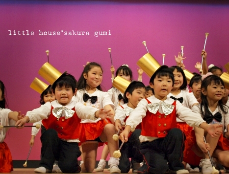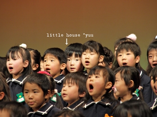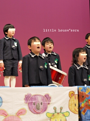 little house*■双子とお兄ちゃんの暮らし■ のんびりゆっくり気ままなフォト日記・・・*PAGE | 201 202 203 204 205 206 207 208 209 210 211 | ADMIN | WRITE 2009.12.20 Sun 22:12:57 ■ さいごの発表会…*その1■・・・・・・・・・・・・・・・・・・・・・* 12月19日(土)に 幼稚園のクリスマス発表会がありました。 ゆうとそらにとってこれが幼稚園最後の大イベントです。 幼稚園生活最後の発表会だっただけに… 二人ともすごく頑張ってくれました。 ●大きな会場です● 演技を前に… ちょっぴり緊張しているお二人さん… お兄ちゃんも久しぶりに懐かしい先生とお会いできたので 嬉し恥ずかしだったみたい…* ●ゆうとそら、頑張ってね*● ゆうとそらの幼稚園は、大きな幼稚園なので… 園児の数もいっぱいなんです。 ●うちの子…どこかしら??● ●アッ・・・・ゆうちゃん発見!● そらちゃんは、背が小さくて隠れてしまって見えませんでした(T_T) 残念 ビデオセット完了! 楽しみのパパ…♪ …と 楽しみなお兄ちゃん…♪ 幕が上がり… 最初にお歌と合奏がありました。 そらちゃんは…小太鼓。 ゆうちゃんは、ピアノが好きなのでピアニカ担当です。 二人とも一生懸命頑張ってくれました* 続いて… バトントアリングがありました。 バトンは、とても難しいのですが… みんなとても上手なので、本当に感心しちゃいます。 可愛らしい帽子をかぶって登場!!! ●そらちゃんです● ん? ちょっと緊張している?? ゆうちゃんはとても上手だったので ビックリしちゃいました。(センスあるのかしら…?) ●ゆうちゃんです● アップテンポの曲に合わせて リズミカルに踊る様子がとってももキュートでしたよ~♪ 最後は、さくら組さんが集合して カッコ良く決めポーズ!! 二人ともとっても満足そう~♪ …続きは、また後日。 ■ つづく… ■ ・・……………………* そろそろ年賀状の準備ですね。 今年ももし… 年賀状交換してもいいよ~♪ っという方がいらしたら。。。 年賀状交換しませんか? もし…よかったら・・ですが(笑) 年賀状交換して下さる方がいらしたら… こちらを明記の上、mei宛てにメールくださいね* ……… ■ 年賀状交換 ■ ……… ●郵便番号 ●住所 ●お名前 と ハンドルネーム ●HPをお持ちの方は教えていただけると嬉しいです。 ●メールアドレス …………………………………………… ◆年賀状交換参加はこちらからどうぞ◆ |
