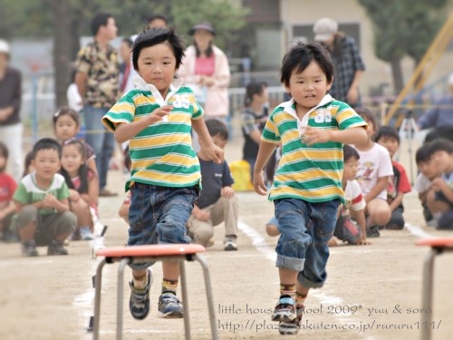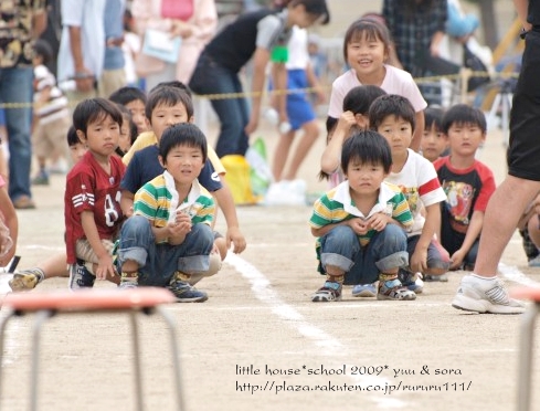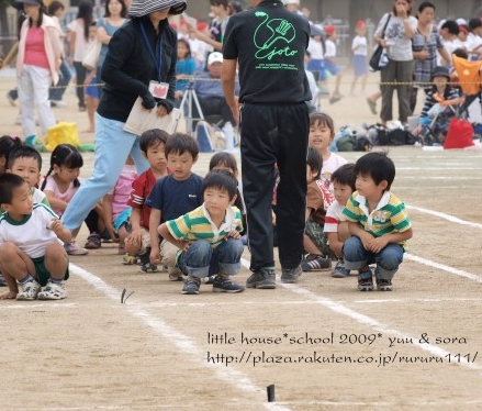 little house*■双子とお兄ちゃんの暮らし■ のんびりゆっくり気ままなフォト日記・・・*PAGE | 240 241 242 243 244 245 246 247 248 249 250 | ADMIN | WRITE 2009.10.11 Sun 11:38:23 ■お兄ちゃんの運動会(かけっこ編)■・・・・・・・・・・・・・・・・・・・・・* お兄ちゃんの運動会(前編)の続きです* お兄ちゃん・・・ 沢山の競技を一生懸命頑張っていました。 ●クラス対抗の競技● この競技の結果は・・・1位でした。(すごい!) ●バンザーイ!● 50m走も頑張りました。 ●緊張してるかな?● ●頑張れ~!頑張れ~!● 結果は4位だったけど、頑張った!頑張った! そして・・・ ゆうとそらも学校のかけっこに参加しました。 ●来年1年生だよ~● 来年1年生になる子供たちだけのかけっこです。 思っていたよりも沢山の人数だったので ビックリしました。 ゆうとそらは1番目に走ります。 ●ゆうちゃん緊張&そらちゃん余裕??● 先生のお話を聞いて・・・ 理解をしたお二人さん・・・ そしていよいよ・・・ ●よーい!ドン・・・● みんないい勝負!!! ・・・っと思ったら、 ゆうちゃん、さすがの1番!! そらちゃん、3番でゴールインでした。 ●やった~1位だ●(ゆうちゃん) ゆうちゃん、走るのは結構速いみたい・・・ ご褒美に折り紙を貰った2人・・・* ●おりがみだ~● 応援席からは・・・ お兄ちゃんが旗を振って応援してくれていました。 ●ゆう、そら頑張れ~!● 優しいお兄ちゃんです。 運動会の午後の部は・・・次回に続く・・・。 ・・・・・・・・・・・・・・・・・・・・・・・* 日記がおもしろかったら・・ポチッと押して頂けると嬉しいです* ■こちら只今2位☆■ ありがとうございます* ↓ ポチッ *・・・・・・・・・・・・・・・・・・・・・・・・* PR |