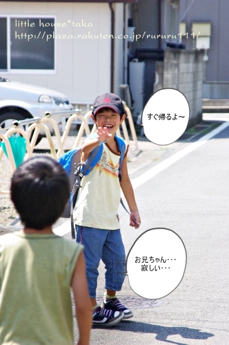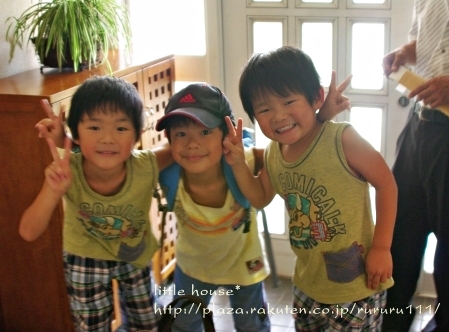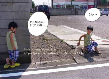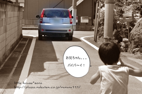 little house*■双子とお兄ちゃんの暮らし■ のんびりゆっくり気ままなフォト日記・・・*PAGE | 272 273 274 275 276 277 278 279 280 281 282 | ADMIN | WRITE 2009.08.26 Wed 12:03:03 ■ある日のこと・・・*■カメラ:k-m・・・・・・・・・・・・・・・・・・・・・* 夏休みもようやく終わり・・・ 子供達は、元気に幼稚園と学校へ行きました。 私は・・・ ほんの少し自分の時間が持てるようになったので ホッとしています・・・ 夏休み・・・ 長かったな~・・(しみじみ・・・)( ̄▽ ̄)" 夏休み中は、色んなことがあったので 少しの間・・・ 夏の思い出の記録として・・・ 夏休みの事を日記に載せようと思っています。 夏休み中・・・(8月) お兄ちゃんは、3泊4日のキャンプへ出かけました。 3泊もするのはこれが初めてだったので 正直、心配もありましたが・・・ 男の子だし、思い切って子供の頑張りを信じて このキャンプへ出してみたんです。 キャンプの当日・・・ ●お兄ちゃんと一緒● たくさんの荷物を抱えて・・・ お兄ちゃんは、赤城山の頂上まで出発しました。 (今回は、パパにお願いして連れて行ってもらいました) この日を楽しみにしていたお兄ちゃん。 ●元気良く『行ってきま~す』● でも・・・ しばらくお兄ちゃんが居なくなるのがとっても寂しい ゆうとそらなのです。 ●さみしんぼの二人・・・● お兄ちゃん、気をつけてね! いっぱい楽しんでおいで~♪ たか:『うん!行ってくるよ~』 ブ~~~~~~~~~~ッ=3 車が発進すると・・・ 車が見えなくなるまで・・・ ゆうとそらは、お兄ちゃんにさようならをしました。 そんな様子を見ていたら・・・ 私も・・・ ちょっぴり寂しくなってしまいました。 お家に戻ったお二人さん... お兄ちゃんも居ないし… つまらないので、DVDを観て楽しみました。 ●モンスターズインク見ているよー● DVDを見ている間も・・・ そらちゃんは、お兄ちゃんの事がずっと心配だったんです。 ●お兄ちゃん大丈夫かな~?● 母:『うん!お兄ちゃんは、強いから大丈夫だよ!』 そら:『そっか~!』 そんな会話をしていたら、そらちゃん・・・ 少し安心したのか・・・?? それから二人は・・・ 無言でDVDを観ていました。 ●モンスターズインク● 喧嘩をする時は・・・ 『お兄ちゃんなんか嫌い!』なんていう事もあるけれど・・・ やっぱり、二人にとって大切な存在のお兄ちゃんなんですね。 兄弟、家族っていいものだなぁ~っと 何だか、しみじみ感じた日です。 ・・・・・・・・・・・・・・・・・・・・・・・・・・* 日記がおもしろかったら・・ポチッと押して頂けると嬉しいです* ぜひ!応援!!宜しくお願いします* ↓ ポチッ ●こちらのランキングも2ポチッと・・・よろしくお願いします● ◆お問合せ&お便りメールはこちらからどうぞ◆ ![]() PR |