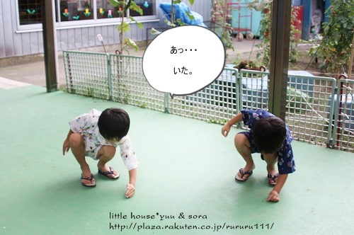 little house*■双子とお兄ちゃんの暮らし■ のんびりゆっくり気ままなフォト日記・・・*PAGE | 289 290 291 292 293 294 295 296 297 298 299 | ADMIN | WRITE 2009.07.28 Tue 12:59:01 (フォト日記)■お祭り楽しい・・・*■・・・・・・・・・・・・・・・・・・・・・* 夏休みに入り・・・ 毎日が忙しくて、なかなかup出来なかったので 少し前の日記になります・・・ (今回は・・・写真いっぱいの日記です) 夏休みの前に開催された幼稚園の花火大会です・・・* 自分達で作ったちょうちんがたくさん並んでいました。 ●ウフフ*の・・・そらちゃん● 自分のちょうちんを見つけて喜ぶそらちゃんでした。 パパも仕事を早く切り上げて来てくれました。 子供達のちょうちんを探してます。 ●見付かったかな~?● ●これはそらちゃん作● ●こっちはゆうちゃん作● それぞれ・・・ 個性的で可愛いです♪ ●甚平さん着たよ● 今年もゆうとそらは 色違いのお揃いの甚平さんを着てます。 ゆうちゃんは、白。 そらちゃんは、紺。 お兄ちゃんは水色の花火。 幼稚園の大好きな担任の先生とパチリンコ☆ (先生、ありがとう!) お祭りが始まるまでまだ少し時間があったので・・・ ゆうとそらは、アリさん探しをする事になり・・・ 全く同じタイミングでアリさんを見つけて しゃがもうとする二人でした。 (あまりのピッタリなタイミングだったので、ビックリです) やっぱり、双子ね~♪ ポーズまで同じ・・・(笑) アリさん、捕まえたの~?? アリさんを捕まえて見せてくれました。 ・・・あっ、アリさん・・・潰れてない? そして・・・ いよいよお祭りが始まり、子供達の盆踊りが始まりました。 ゆうとそらは、『アラレちゃん音頭』だったので、 アラレちゃんの帽子を作ってかぶっています。 羽が生えてて可愛い~♪ ●ゆうちゃん● そらちゃんは、帽子が滑っちゃって・・・ なかなか被れず苦労してました。 ●あれ?おかしいな~?● ●よし!ok~♪● 始まるまでの時間が長かったので、待ちくたびれて・・・ ちょっと眠いゆうちゃんです。 ●寝ないでね~● ●まだかな?● ●まだかな~?● ・・・なかなか始まらなくて・・・ みんな暑そうでした。 でも、音楽が鳴り始めると、みんな元気に踊っていました♪ ●そらちゃんも● ●ゆうちゃんも● 二人ともとっても上手に踊っていました。 盆踊りの後は・・・ 子供達が、廃材で作ったおみこしを担ぎます。 廃材で作ったのに・・・ こんなに可愛いんです♪ ●パンダちゃんのおみこし● ●頑張るそらちゃん● 二人はすぐ側でした・・・。 真剣に先生のお話を聞く二人・・・ ●そらちゃん● ●ゆうちゃん● えらいぞ~! そして・・・ 重たいけど頑張って わっしょい! わっしょい! 頑張りました。 二人ともいい笑顔だね。 つづいて・・・ くじ引き大会なんかもあって・・・ ●順番に並ぶ二人...● 頂いた景品はこちら・・・ ●嬉しそうな3人● それから・・・ それから・・・ スーパーボールすくいもありました。 上手く救えるかな?? 真剣な3人・・・ 無言で頑張る子供達・・・ ボールがコロコロ転がって... 救えそうで救えないんです。 がんばれ~~~~~っ!! そらちゃんは、カップに入れようとすると コロンと落ちちゃうので、救い上げるのに時間が掛かってました。 一足先にボールをゲットしたゆうちゃん。 そらちゃんはまだ1個だけ・・・ まだまだ救ってます。 お兄ちゃんも・・・ さすがの3年生。 自分の好きな色のボールをゲットしていました! そして・・・ ようやくそらちゃんもボールをゲット! 何だか汗でビッチョりだね・・・・( ̄о ̄)" ・・・ つづく ・・・ ・・・・・・・・・・・・・・・・・・・・・・・・・・・* 日記がおもしろかったら・・ポチッと押して頂けると嬉しいです* ぜひ!応援!!宜しくお願いします* ↓ ポチッ ●こちらのランキングも2ポチッと・・・よろしくお願いします● ◆お問合せ&お便りメールはこちらからどうぞ◆ ![]() PR |