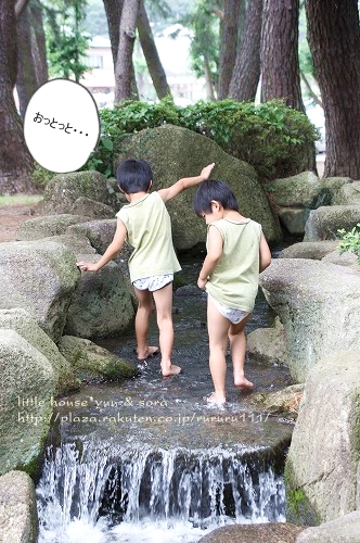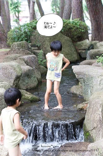 little house*■双子とお兄ちゃんの暮らし■ のんびりゆっくり気ままなフォト日記・・・*PAGE | 293 294 295 296 297 298 299 300 301 302 303 | ADMIN | WRITE 2009.07.22 Wed 00:34:59 ■水遊び・・・*■・・・・・・・・・・・・・・・・・・・・・* ・・・前回の日記の続きです・・・ 公園にある小さな水遊び場で・・・ ひんやりと・・・ 涼しく遊びました。 急いで..。 おパンツ星人に変身したそらちゃん(笑) ↓ 二人ともおパンツ星人で気持ちよさそうに お水遊びをしていました。 ちょっとした、こんな滝があったりして・・・ ちょっぴり探険気分にもなれます。 ●ガニマタ星人● この川のお水は、意外にも冷たいのですが・・・ 子供達は、へっちゃらでした。 ●どこまで行くの?● 二人が目指していたのは・・・ この場所。 さすがにこの滝は登れないので・・・ 横道へ・・・ しばらくの間・・・ ここでずっと遊んでいた3人・・・ スズメさんも・・・ 暑いのか? ここで水浴びしていました。 ●体を乾かしているスズメさん● そろそろ・・・上がろうね。 着替えを済ませたそらちゃんは・・・ いつの間にかこんな所へいました。 お~い! そらちゃん。 前はこの遊具・・・ すごく、こわごわだったけど・・・ 今じゃへっちゃらで遊べるんだね。 みんなアスレチックで楽しく遊んでます。 ●必死に登るゆうちゃん● ●軽快に登るお兄ちゃん● ●よっこらよっこらと登るそらちゃん● みんな元気いっぱいです。 最近・・・ 子供が遊んでいるのを見ていると・・・ 男の子はやっぱり男親と遊ぶに限る!!と つくづく思ったりします。 私の体力じゃとうていついていけましぇ~ん!!! 子供達の好きなターザンロープ・・・ ●お兄ちゃん● パパにロープを引いてもらっているそらちゃん。 楽しかった? ゆうちゃんも・・・ 激しくターザンしたので・・・ ちょっと怖かったみたい・・・(笑) 大丈夫? ターザンロープの後は・・・ 久し振りにボートに乗りました。 子供達にポップコーンとボート券を買ってきてもらいました。 残念な事に・・・ この白鳥ボート4人乗りなんです。 我が家は5人家族なので・・・1人店員オーバー(T_T) 仕方が無いので私はお留守番していました。 楽しそう~♪ 頑張って、漕いでいるかな?? みんな可愛いなぁ~♪ 30分のボートタイムも終わり・・・ そろそろ帰ることにしました。 ●お二人さん、そろそろ帰ろうね● 帰りは・・・ 松林の中を通り抜けて帰りました。 楽しかったね* ・・・・・・・・・・・・・・・・・・・・・・・・・・・* 日記がおもしろかったら・・ポチッと押して頂けると嬉しいです* ぜひ!応援!!宜しくお願いします* ↓ ポチッ ●ランキング3ポチっ・・・とよろしくお願いします● ◆お問合せ&お便りメールはこちらからどうぞ◆ ![]() PR |