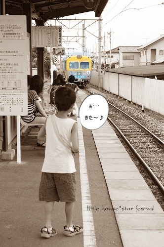little house*■双子とお兄ちゃんの暮らし■ のんびりゆっくり気ままなフォト日記・・・*PAGE | 299 300 301 302 303 304 305 306 307 308 309 | ADMIN | WRITE 2009.07.12 Sun 00:44:02 ■七夕祭り・・・*(電車にのって)その1■・・・・・・・・・・・・・・・・・・・・・* 今日は、地元の七夕祭りがありました。 パパは、出張で留守だったので 私と子供たちとでお祭りに行ってきました。 おばあちゃんにお小遣いをもらった3人・・・ 何を買おうかと楽しみにしていました。 街中はめちゃくちゃ混むので 車はやめて電車で行く事にしました。 ●電車町の人● まだかな~? 遠くからレンズを向けていたら・・・ はやくーーーーーーーって、 呼ばれちゃいました(汗)" ●ゆうちゃん● ゆうちゃんは、めちゃめちゃお祭りを楽しみにしています。 ●3人はとっても元気です● 少し早く駅にに着いてしまったので・・・ 電車待ちの時間が少しありました。 ●電車待ちしているゆうとそら● お兄ちゃんとゆうちゃんは、 早く電車が来ないかな~っと 駅の先端まで行って線路を眺めていました。 そらちゃんは・・・ ここで・・・ しばらくすると・・・ 電車が来ました。 ガタン・・・ゴトン・・・ ガタン・・・ゴトン・・・ 駅でたまたま偶然、 お隣さんの仲良しファミリーと会ったので(ビックリ!) 一緒にお祭りに行く事にしました。 街に着くと・・・ 綺麗な飾りが下がっていて・・・ お祭りムード一色です。 それにすごい人でした。 幼稚園で出していた七夕飾りを発見!! ゆうとそらの短冊もあるはずなんですが・・・ 風でせっかくの飾りが絡まってよく見えませんでした。(T_T) 残念 ●幼稚園の七夕飾り● ゆうちゃんが1番したかったコレ・・・ 金魚すくいです。 続きはまた後日・・・ (つづく・・・) ・・・・・・・・・・・・・・・・・・・・・・・・・・・* 日記がおもしろかったら・・ポチッと押して頂けると嬉しいです* ぜひ!応援!!宜しくお願いします* ↓ ポチッ ●ランキング3ポチっ・・・とよろしくお願いします● ◆お問合せ&お便りメールはこちらからどうぞ◆ ![]() PR |