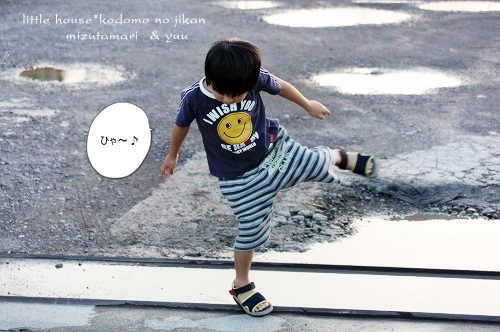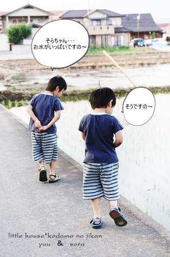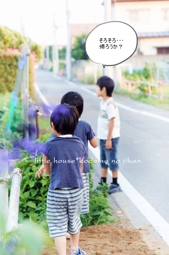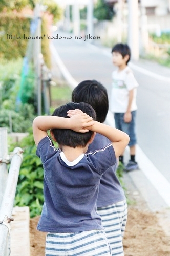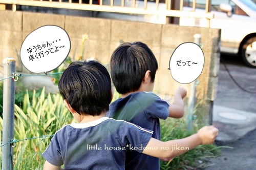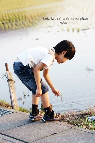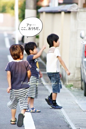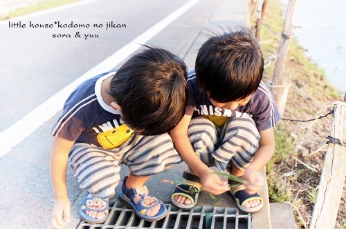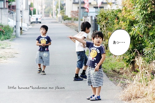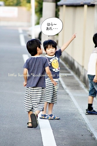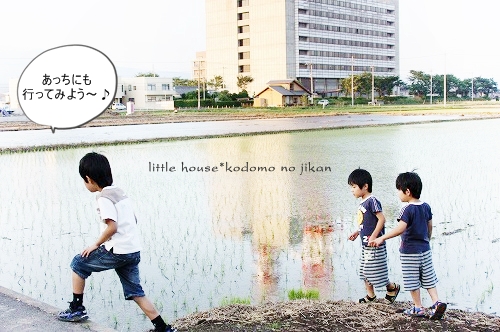 little house*■双子とお兄ちゃんの暮らし■ のんびりゆっくり気ままなフォト日記・・・*PAGE | 322 323 324 325 326 327 328 329 330 331 332 | ADMIN | WRITE 2009.06.15 Mon 14:33:44 ■こんなに近いのに・・・*■・・・・・・・・・・・・・・・・・・・・・* (本日も写真盛りだくさんです) 最近・・・ 子供たちは、夕暮れのお散歩&探険を 楽しみにしているので、今日もカメラを片手に出掛けてみました。 ●お兄ちゃん● ●そらちゃん● いつもはこの道をまっすぐ行くのですが・・・ 今日はいつもと違った道を探険に行きました。 お家の裏の道に出ると いつもと違った風景を見ることが出来ました。 ●何かを見つけた3人● 自分のお家を裏からじっくり見ることがあんまりないので ちょっと新鮮だったみたいです(笑) ●我が家を裏から見たところ…● 双子たちの子守は・・・ お兄ちゃんに任せます。 ●頼もしいお兄ちゃん● ●危なっかしい双子たち● くっ付きすぎです。 いつも見慣れない住宅街をトコトコと歩いていると とっても目立つ風車を発見しました。 よく回っていたので 子供たちは釘付けでした。 ●風車● ●よく回ります● よく見るとペットボトルで作られていました。 物作りの好きなおにいちゃんは・・・ かなりじっくり観察してました。(笑) ゆうちゃんが指揮を取りながら・・・ みんなで歩きます。 トコトコ歩いていると・・・ そらちゃんが見つけたものは・・・ ●何かを発見したそらちゃん● それは・・ 眩しい位の綺麗な夕焼けでした。 本当に綺麗・・・ トコトコ歩いていたら・・・ 子供たちが普段見慣れない水田がありました。 お水が沢山だったので 嬉しかったみたい♪ ●初めての水田に感激するお兄ちゃん● ●ゆうちゃんも● お兄ちゃん・・・ 本当は入りたいんでしょう???( ̄о ̄)(ボソッ) ●お兄ちゃん● だんだんと・・・ 楽しくなってきた3人です。 ●井戸端会議中~♪● 水田の隣には、こんな風景も見えました。 そらちゃんはこの風景を 『泥の道』・・・と名づけていました。(なるほど!) ●泥の道をバックにパチリンコ☆● しばらく水田の周りを 3人は探険していました。 ●ゆうちゃん● ●お水が流れているのを見ているそらちゃん● ●ヒョロヒョロの葉っぱを見つけたゆうちゃん● ●やっぱり水田が気になるお兄ちゃん● ●ゆうちゃん● ●ニコニコそらちゃん● たくさんお水が流れているので 二人とも真剣にず~~~っとここを覗き込んでいました。 ●仲良しのそらとゆう● そろそろ・・・ 夕日が沈んできたね。 夕日が水田のお水に光ってキラキラしていました。 綺麗だな~ アッ・・・ そらちゃんのお顔も夕日で赤く見えるよ~♪ ●そらちゃん● そろそろ帰ろうか・・・ アッ・・・ ここにも風車だね~♪ また少し形が違うんだね。 この風車・・・ 鳥除けなのかな~? よく見ると畑のあちこちに風車がありました。 楽しいね~♪ そうだね~♪ そろそろ帰ろう・・・ 田舎道は・・・ 可愛いお花がたくさんありました。 そして・・・ 最後に記念撮影* パチリンコ・・・☆ 緑がいっぱいで・・・ たくさん歩いて・・・ 風が気持ちよくて・・・ 今日はいい探険ごっこが出来たね。 最後に見つけた・・・ いっぱいの水溜り。 水溜りに入りたかったけど・・・ 今日は長靴じゃないからダメ~♪ ●ギリギリのゆうちゃん● さ・・・ お家に着いたよ~♪ こんなに近いのに・・・ あんまり見ることの出来なかった風景・・・。 子供たちも私もとても新鮮でした。 もっと子供たちと色んな所へ出かけてみたいです。 あれれ?? そらちゃん・・・どうしたの? ●帰りたくないそらちゃん● お散歩が楽しかったんだね・・・ 今度また行こうね! そらちゃん・・・* ・・・・・・・・・・・・・・・・・・・・・・・・・・・* 日記がおもしろかったら・・ポチッと押して頂けると嬉しいです* ぜひ!応援!!宜しくお願いします* ↓ ポチッ ●ランキング3ポチっ・・・とよろしくお願いします● ◆お問合せ&お便りメールはこちらからどうぞ◆ ![]() PR |