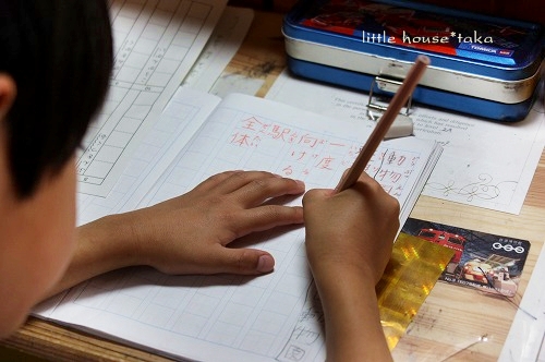 little house*■双子とお兄ちゃんの暮らし■ のんびりゆっくり気ままなフォト日記・・・*PAGE | 326 327 328 329 330 331 332 333 334 335 336 | ADMIN | WRITE 2009.06.10 Wed 19:18:21 ■ 公文・・・* ■・・・・・・・・・・・・・・・・・・・・・* 今日から入梅ですね。 雨の日はちょっぴり憂鬱ですが・・・ 楽しく♪この梅雨の時期を乗り切りたいです・・・(^-^*) ●ベランダの秋アジサイ● *・・・・・・・・・・・・・* 子供たちは、公文に通っています。 お兄ちゃんはもう4年目 ゆうとそらは、3ヶ月目になるかな。 ●毎日公文の宿題を頑張る二人● お兄ちゃんは3教科(国語・算数・英語) 双子たちは、国語だけしているんですが・・・ 来年1年生になるゆうとそらは、 ようやく読み書きが出来るようになってきたので 少し安心しています。(ホッ) お兄ちゃんは、英語が好きみたい。 ●宿題中のお兄ちゃん● 学校と幼稚園から帰ると みんなで同じ時間に一緒に宿題を済ませるようにしているんです。 ●そらちゃんも● ●ゆうちゃんも● ●お兄ちゃんも● みんな頑張っています。 お兄ちゃん・・・ ちょっと漢字が苦手なんです・・・が、 だんだんとかっこ良く 字が書ける様になってきたみたい・・・?! 頑張れ~! ●学校の漢字の宿題● ●練習!練習!● 子供たちの勉強を見守りながら、 私も一緒に勉強してます(笑) 最後に・・・ 今日、『おっとっと』のスナック菓子を食べていた子供たち。 そらちゃんの袋に幸せのハート『おっとっと』が入っていました* ●可愛いね~● 可愛いハートさんにちょっと嬉しいそらちゃんでした。 良かったね* ・・・・・・・・・・・・・・・・・・・・・・・・・・・* 日記がおもしろかったら・・ポチッと押して頂けると嬉しいです* ぜひ!応援!!宜しくお願いします* ↓ ポチッ ●ランキング3ポチっ・・・とよろしくお願いします● ◆お問合せ&お便りメールはこちらからどうぞ◆ ![]() PR |