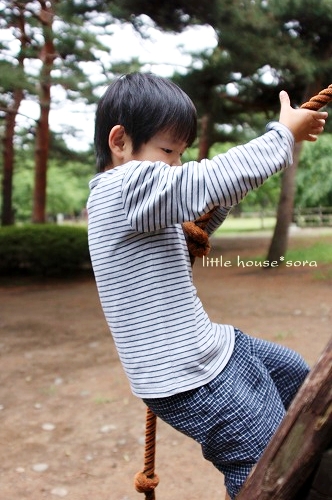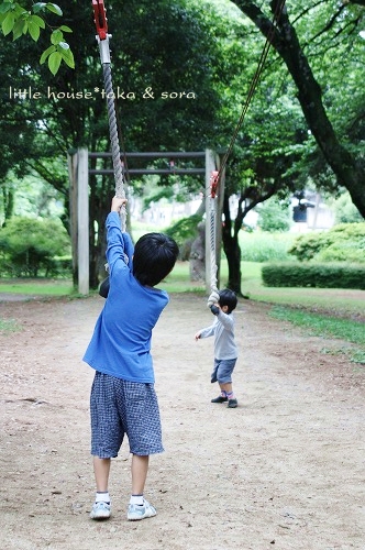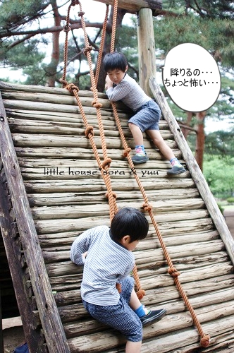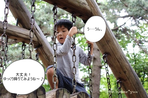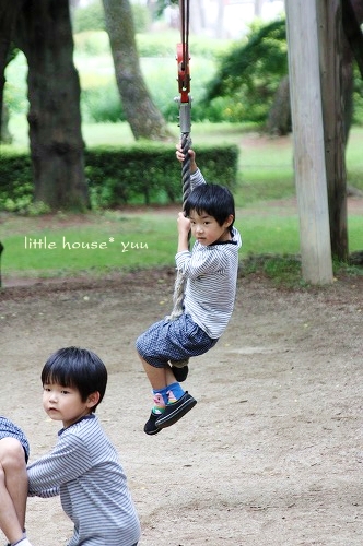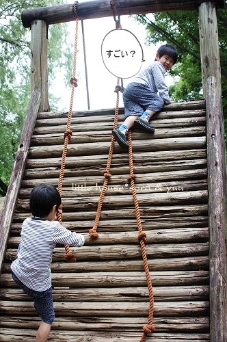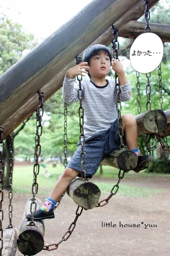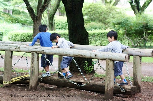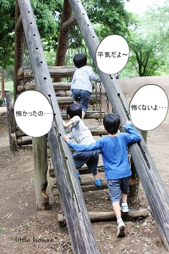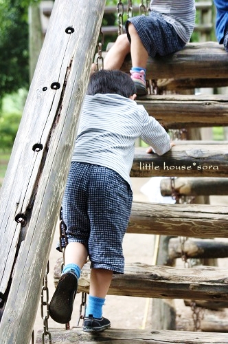 little house*■双子とお兄ちゃんの暮らし■ のんびりゆっくり気ままなフォト日記・・・*PAGE | 334 335 336 337 338 339 340 341 342 343 344 | ADMIN | WRITE 2009.06.02 Tue 22:40:44 ■ 怖いけど楽しい・・・* ■・・・・・・・・・・・・・・・・・・・・・* またまた前回の日記の続き・・・ 虫取りとカラスの捕獲??を楽しんだゆうちゃん・・・(笑) その後は・・・ 森林浴を楽しみながら・・・ 思いっきり遊びました。 ●まだ虫を探しているゆうちゃんとお兄ちゃん● 川に何かいるかな~?っと 仲良く二人で遊んでます。 ●ゆうとそら● この川には・・・ お魚さんがいないのですぐに飽きてました・・・ ( ̄о ̄)ハハハ… そして、 この公園にはちょっとしたアスレチック?のような遊具があるので スリルを楽しみ事が出来るのでした。 ●怖がりなゆうちゃん● 私に似て・・・ 高所恐怖症のゆうちゃんですが・・・ チャレンジ精神はめちゃくちゃあるんです。 (後で後悔するタイプですが・・)( ̄о ̄)"ハイッ! そらちゃんも頑張って登ります。 ●怖がりだけど結構平気なそら● なかなか登れないゆうちゃんを横目に ドンドン登るそらちゃん。 思いのほかそらちゃん余裕なのです。 ↓ そして・・・ とりあえず登りきったゆうちゃんですが・・・ 今度は降りるのが怖いのでした。 頑張れ~♪ ゆうちゃん。 お兄ちゃんは・・・っと言うと ツリーハウスの上にいました。 ●お兄ちゃん● いつの間にかゆうちゃん・・・ やる気マンマンなのか? 味を占めたのか? 恐怖を乗り切ったのか? 更なるチャレンジをしようとしていました* ●ゆうちゃん● 本当はこの遊具・・・ 怖いんです。 でも・・・ なかなかいい感じで登ってました。 今日のゆうちゃんは、ちょっと違うのかしら? ・・・っと思ったのもつかの間・・・ あやしい雲行き。 ●ちょっとビビリ顔のゆうちゃん● 大丈夫かな~? ・・・そう見守る間もなく 叫んでました(汗)"( ̄▽ ̄)"やっぱりな~ ●叫ぶゆうちゃん● でも・・・ ここまできたんだし・・・ 自分で頑張ってほしかったので・・・ 応援してみます。 ●駄目だこりゃ~のゆうちゃん● 何だかんだと、大騒ぎしながらも 一歩づつ進んで何とか降りられました。(ホッ) ●何事もなかったような顔をするゆうちゃん● そのうち・・・ 川遊びを楽しんでいたお兄ちゃんとそらちゃんも・・・ 一緒に遊んでいました。 ゆうちゃんも2回目のチャレンジ!!! おっ・・・ 見えてきました。 何だかみんな大丈夫そうかな? ●慎重なお兄ちゃん● ●2度目で男になったゆうちゃん● ●お尻から降りるそらちゃん● みんなそれぞれに勇気をもらって 降りる事が出来ました。(ヤレヤレ・・・) 男の子は、やっぱりそうでなくちゃね* そして今度は・・・ ターザンロープ。 これは、3人とも大好きな遊具です。 みんなで交代で助け合って遊んでいたので エライなぁ~っと少し感心してしまいました。 ●お兄ちゃんを引っ張るそらちゃん● ●そらちゃん待ちのゆうちゃん● そして・・・ 最後はこれ。 グラグラして楽しいのです。 ・・・突然そらちゃんが走り出したので どうしたんだろうと思ったら・・・ ●走るそらちゃん● 赤く綺麗なカエデの葉が沢山落ちていたので その葉っぱで遊びたかったみたいです。 (な~んだ!) ●カエデの葉を並べるそらちゃん● ゆうちゃんも一緒に葉っぱを探します・・・ ●カエデの種を見つけたゆうちゃん● お兄ちゃんも・・・ そして・・・ ひたすら葉っぱを並べていました。 可愛いね~♪ ソロソロおやつでも食べようね・・・* ●アイスを食べるそらちゃん● ●ポテロングを食べるゆうちゃん● まだまだ遊びたかったけど・・・ この後、雨が降ってきちゃったので お家に帰りました。 子供たちと一緒に遊んでいると色んな発見が出来るので とっても楽しかったです♪ ・・・おしまい。 (長いお出掛け日記にお付き合い下さってありがとうございます。) ・・・・・・・・・・・・・・・・・・・・・・・・・・・* 日記がおもしろかったら・・ポチッと押して頂けると嬉しいです* ぜひ!応援!!宜しくお願いします* ↓ ポチッ ●ランキング3ポチっ・・・とよろしくお願いします● ◆お問合せ&お便りメールはこちらからどうぞ◆ ![]() PR |