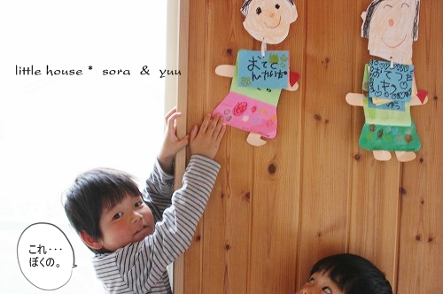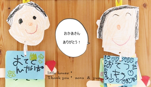 little house*■双子とお兄ちゃんの暮らし■ のんびりゆっくり気ままなフォト日記・・・*PAGE | 347 348 349 350 351 352 353 354 355 356 357 | ADMIN | WRITE 2009.05.12 Tue 12:44:08 お母さんありがとう・・・*・・・・・・・・・・・・・・・・・・・・・* 最近・・・ 過ごしやすくなってきたので お家の事をしているのがとても楽しいです。 ●べランダで咲いているツル薔薇アンジェラ● ●大切に育てているインドボダイジュ● 葉っぱが可愛いのです* ガーデニング・・・ お部屋の模様替えに・・・ ミシンTime・・・♪ 今、リネン生地がたくさんあるのでソファーのカバーを 仕立て直したり、自分用のお洋服を作っています。 最近・・・自分の服は自分で作るので あんまり買っていないなぁ~( ̄о ̄)ボソッ *・・・・・・・・・・・・・・・・・・・・・・・・・* 5月10日の母の日は・・・ 子供たちから可愛い贈り物を頂きました。 自分達のささやかのお小遣いの中から こんなに素敵なお花を買ってくれたのです。 子供たちが選びそうな元気色のお花でした。 ママは、嬉しくて嬉しくてウルウルしてしまいました。 嬉しかったから、君達へメッセージを残してみました。 *・・・・・・・・・・・・・・・・・・・・・・・・・・・・* ■ 子供たちへ・・・ ■ ママは、君達にとって・・・ 100%のママではないかもしれませんが・・・ ママは、君たちの事を世界中の誰よりも愛しています。 君達の優しさや元気パワーは、 ママにとって何よりの元気パワーの源ですよ。 これからも家族のためにママは頑張るね! そして・・・ ママからも君達へ・・・ いつも優しさと笑顔をありがとう* 3人のママより *・・・・・・・・・・・・・・・・・・・・・・・・・・・・* 以上・・・ ママからのメッセージでした。(照)( ̄▽ ̄)” そして・・・ 双子のそらとゆうは、 幼稚園で可愛いお土産を作ってきてくれました。 ↑ ▲ 左)そらちゃん作 * 右)ゆうちゃん作 ▲ 可愛いお顔の下には、何枚ものお手伝い券が下がっていました。 ( ̄о ̄)”ママのお顔がニコニコ(^-^)笑顔でよかった~♪ せっかく可愛いお土産をくれたので・・・ 記念撮影しました☆ 二人ともいいお顔だぞ~! しばらくの間・・・ ここに飾っておきます。 (お手伝い券は、勿体無くて使えそうにありません) ↓ さてさて・・・ ゆうちゃんは、そろそろおやつかな? こうして母の日が来ると・・・ 母になれて本当に良かったと思える日でもありますね。 こちらこそ* ・・・・・・・・・・・・・・・・・・・・・・・・・・・* 日記がおもしろかったら・・ポチッと押して頂けると嬉しいです* ぜひ!応援!!宜しくお願いします* ↓ ポチッ ●ランキング5ポチっ・・・とよろしくお願いします● ◆お問合せ&お便りメールはこちらからどうぞ◆ ![]() PR |