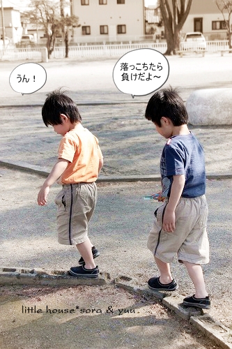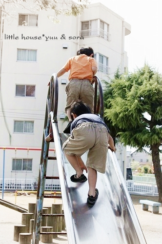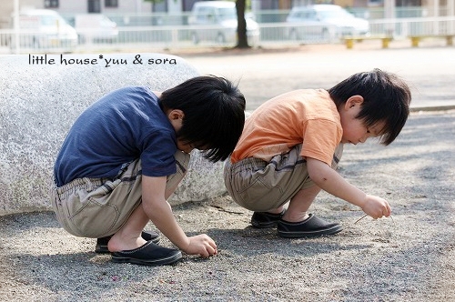 little house*■双子とお兄ちゃんの暮らし■ のんびりゆっくり気ままなフォト日記・・・*PAGE | 361 362 363 364 365 366 367 368 369 370 371 | ADMIN | WRITE 2009.04.20 Mon 18:51:21 写真いっぱい*アリさんと公園・・・*・・・・・・・・・・・・・・・・・・・・・* お天気がいいので 双子達と一緒に公園へ行きました。 二人仲良く・・・ いっぱい いっぱい遊びます。 赤ちゃんの頃から、よく遊びに来ている公園なので もう~ここの遊具には、 慣れっこのお二人さんでした。 ひたすら・・・ 同じ姿勢で砂場で何かをしていたお二人さん。 そらちゃん、何しているの~? お砂かな? ゆうちゃん、何? それ、何? 木の実でしょうか?? ゆうちゃん・・・ 飽きもせず、ずっと地面とにらめっこ。 何だろう? 良く見てみたら・・・ 大きなアリさんの穴がありました。 何をしているのかと思えば・・・ アリさんの穴を埋めてるゆうちゃんなのでした。(汗)" そらちゃんは・・・ ↓ 優しいのね* ゆうちゃん・・・ ちょっと反省中?(笑)" それにしても・・・ 沢山のアリさんの穴。 さすがにそらちゃんも・・・ やっぱり気になっちゃうみたい・・・(^-^) ここの公園に1本だけ咲いていた桜の木。 遅咲きの桜なので、まだきれいに咲いていました。 ピンク色で可愛いな~♪ 桜の木をバックに・・・ ゆうちゃんをパチリンコッ・・・* (何気に七三わけ・・・?)(笑)プププッ・・・ 二人並んで歩いていたら・・・ ゆうちゃんのズボンにてんとう虫ちゃんが飛んできました! (ビックリ!!) ゆうちゃんは、このキャンディーが最近好きです。 いつも持ち歩いてペロペロなめてます。 いつも二人は一緒だね。 ぁ・・・またアリの巣見つけたの~? しかし・・・ここの公園・・・ ありの巣がすごいな~ 突然・・・ ゆうちゃんが・・ ・・って、ずっとママは写真撮りっぱなしなんですけど(滝汗)" ハイハイ。 了解ですよ~♪ じゃ~二人並んでくださいな* じゃ~撮るよ~♪ ハイ!チーズ* ・・・ゲッ。 ゆうちゃん、また変顔してる~っ”” ねー ねー いいお顔してね~('О')" じゃ・・・ 気を取り直して・・・! ハイ! チーズ* いいね~ いいね~~っ♪ もう1枚。 あら・・・ そらちゃんったら・・・。 ん? 寝てる? な~んちゃって! だって。 大笑いしているお二人さんでした♪ 返り道・・・ 線路を渡って帰ります。 電車が好きな子供達。 ここの公園へ来ると必ず電車が来るのを待ちます。 電車がなかなか来ません。 まだかな~ まだかな~ 早く来ないかな~? 電車の汽笛が聞こえたね。 アッ・・・来たぞ~! うわぁ~♪ 青い電車だ! 電車さ~ん! バイバーィ! 電車の運転士さんはいつも手を振ってくれるので 子供達、すごく喜ぶんですよ。 運転士さん、優しいね! ・・・・・・・・・・・・・・・・・・・・・・・・・・・* 日記がおもしろかったら・・ポチッと押して頂けると嬉しいです* ぜひ!応援!!宜しくお願いします* ↓ ポチッ ●ランキング5ポチっ・・・とよろしくお願いします● ◆お問合せ&お便りメールはこちらからどうぞ◆ ![]() PR |