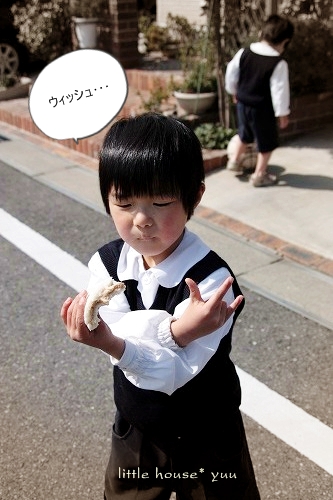 little house*■双子とお兄ちゃんの暮らし■ のんびりゆっくり気ままなフォト日記・・・*PAGE | 379 380 381 382 383 384 385 386 387 388 389 | ADMIN | WRITE 2009.03.24 Tue 15:30:56 今日で幼稚園おしまいだね・・・*・・・・・・・・・・・・・・・・・・・・・* 今日もポカポカいいお天気・・・ お兄ちゃんのインフルエンザ・・・ なかなか良くなりません・・・ 昨日はお熱も下がって落ち着いたのかな~っと思って ホッとしていたんですが・・・ 夜になってまたお熱が出てしまいました。(T_T) 可愛そうなお兄ちゃん。 今日は病院へ行ってまたお薬を頂いてきました。 今日のお兄ちゃん・・・ 少し気分が良かったみたい♪ ニコニコ笑える余裕も少し出てきました。 あさっては、学校の修了日・・・ でも、学校へ行けないまま2年生が終わってしまいそうです。 早く元気になりますように。。。 *・・・・・・・・・・・・・・・・・・・* そして・・・ 双子のお二人さん。 今日で幼稚園(年中さん)が終わりました。 来年度のクラスも決まり・・・ ママ同士でメール交換してます。(笑) 同じクラスになれたかな~?ってね! 年中さんの終わりの記念に・・・。 記念撮影しました(^-^) パンを食べながらの記念撮影・・・(笑) ささ・・っ撮りますよ! パチリンコ☆ ゲッ・・・ ゆうちゃん、また白目じゃん! オイオイ・・・ 頼むよ~ 気分を新たにもう1枚! パチリンコ☆ いいお顔で撮れて良かった* お隣のお家の仲良しのMちゃんとCちゃんと一緒にパチリンコ☆ お友達・・・今日がお誕生日だったので 贈り物を届けました・・・ Mちゃん、8歳のお誕生日おめでとう! この後は・・・ ゆうちゃんとそらちゃんお外で少し遊びました。 ウィッシュをするゆうちゃん・・・ 流行りものが意外と好きなんです*(ハイッ!) 明日から春休み・・・ お兄ちゃんが早く元気になったら またいっぱい遊べるね! ■コメントのお返事は、今夜しますね! お返事待っていてくださ~い! mei ・・・・・・・・・・・・・・・・・・・・・・・・・・・* 日記がおもしろかったら・・ポチッと押して頂けると嬉しいです* ぜひ!応援!!宜しくお願いします* ↓ ポチッ ◆お問合せ&お便りメールはこちらからどうぞ◆ ![]() PR |
