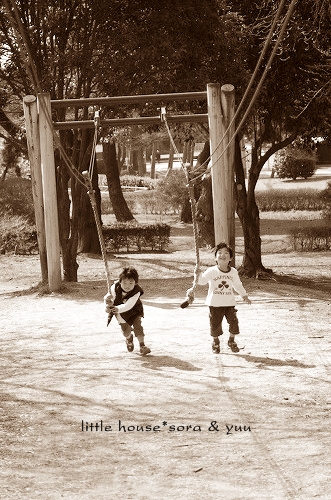 little house*■双子とお兄ちゃんの暮らし■ のんびりゆっくり気ままなフォト日記・・・*PAGE | 381 382 383 384 385 386 387 388 389 390 391 | ADMIN | WRITE 2009.03.19 Thu 13:36:54 公園&ミノルタα sweetデジタル手放します・・・*・・・・・・・・・・・・・・・・・・・・・* 昨日は、双子達の幼稚園の卒業式で、在園児はお休みだったので 双子のゆうとそらと一緒に近くの公園まで遊びにいきました。 ぽかぽかのいいお天気・・・気持ちがいいなぁ~♪ アヒルさんがいるかな? ゆうちゃんは、おやつの入ったMY bagを大切そうに持ちながら・・・ ハトを追いかけました。 ゆう:『待って~!』 そ~っとそ~っと・・・ 追いかけてみる。 わぁ~♪ いっぱい! また追いかけてる・・・ ずっと追いかけてたら・・・ バタバタバタ~~~~~~~~~ッ ハトさんに逃げられちゃった。 そらちゃんは、ちょっとハトさんが怖い。 そんなそらちゃんのところへ… ハトさんが飛んできたから、そらちゃんはビックリ!! ゆうちゃんは、アヒルがどうしても気になって・・・ お池を見ながら待ってました。 なかなか、来てくれないねぇ~・・ お池さんからはなれて、テクテクと歩いていくと・・・ 木の上のお家を発見! 『あれ登る~!』 1番に登ったそらちゃん。 ↓ 登ったはいいのですが・・・ 降りられなくなったらしい・・・(T_T) そこで、怖いもの知らずのゆうちゃんがお助けマンに! さすが、ゆうちゃん。 ちょっと不安そうなそらちゃんと、たくましいゆうちゃん。 ゆうちゃんが手を差し伸べてくれていました。 優しいなぁ~ ひとまず、ゆうちゃんのおかげで 無事に先に降りられたそらちゃん。 良かったね! その後に・・・ ゆうちゃんも降りてた。 気をつけてね! ゆうちゃん・・・ 公園を見回すと・・・ ん?桜? 早咲きの桜が満開でした。 わ~! きれい。 本当に満開でした。 綺麗な桜を見つけてお二人さんは桜の木に抱っこ・・・* ゆうちゃんは広い公園を夢中で走り回りました。 いっぱい走るの気持ちがいいよね。 その間に、しばし桜ちゃんをカメラでパチパチッ☆ あ~~~っ春だなぁ。 あれ?二人がいない・・・ っと思ったら・・・ こんな所に。 ↓ ゆうちゃん・・・ちょっと怖い? これ、グラグラするんだよねー ↓ やっぱりこれこれ。 ターザンロープ・・・楽しい! さて・・・ そろそろ帰ろうか。 *・・・・・・・・・・・・・・・・・・* 今日の日記は、ミノルタαsweetデジタルで写真を撮りました。 いつもとちょっと雰囲気が違うかな~? このカメラ・・・すごく写りもいいしいいカメラなんです・・・っが、 (大切にしていたんですけど) 思い切って、手放すことにします。 今夜、オークションに出そうかと・・・。 そこで、オークション出品前にどなたかほしい方がいらっしゃれば お譲りしたいと思いました。 ■内容はこちら■ メディアは開封しただけの新品4GBとバッテリー、ダブルズームレンズ。 それから、カメラ本体とバッテリー充電器他付属品ガ付きます。 それから、おまけで美品のオリジナルBagとαsweetの写真の撮り方が 分かるマスターズブックも付けちゃいます。 取扱説明書もついてますよ。すぐに撮れる状態です。 カメラは、子供の発表会で1度使ったきりなので、新中古という状態です。 レンズもカビやホコリ、曇りも無く綺麗なレンズです。 このカメラはノイズも少なく(canonと同等です)綺麗な写真が撮れます。 このカメラとレンズで撮った写真は、 本日と前回の写真を参考にしてみてくださいね* ■カメラの内容■ フラッシュ内臓レンズ交換式デジタル一眼レフカメラ「αSweet」 有効画素数約610万画素、手ぶれ補正機構と2.5型の大きな液晶モニター 手ブレ機能がカメラ本体に入っているのですごくいいんです! レンズは、28-80mmのレンズと75-300mmのレンズになります。 望遠レンズは、最高ですよ~ すごく綺麗に撮れます。 こちらのカメラ・・・ カメラ好きの人には、評判のいいカメラなので 意外と手放す人が少ないカメラなんです。 お値段の方なのですが・・・ オークション出品の際に金額を35000円~予定していたので、 思い切って!35000円で、お譲りしたいと思います。 すでに設定済みなので、面倒な設定もしなくて大丈夫! (後はお好みで設定を変更してみてください) バッテリーも充電済みなのですぐに使えますよ~(^-^) この機種は中古でもオークションで、 ボディーのみで2万ちょっと位なのでダブルレンズと合わせると オークションでも普通は4万~出ちゃうと思います。 それに、消費税とかオークションだと落札手数料5.25%も取られてしまうので・・・ 勿体無いですよね・・・ なので、この機会にもし良かったら検討してみてください。 よろしければ・・・ ↓ 下記の所からメールくださ~い。 宜しくお願いいたします ■追伸■ 先ほどオークションの方にも出品いたしました。 こちら ↓ 入札が無い場合でしたら、ご相談に乗れますので その際にはこちらまでご連絡頂けると嬉しいです♪ ↓ ![]() ・・・・・・・・・・・・・・・・・・・・・・・・・・・* 日