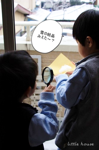 little house*■双子とお兄ちゃんの暮らし■ のんびりゆっくり気ままなフォト日記・・・*PAGE | 398 399 400 401 402 403 404 405 406 407 408 | ADMIN | WRITE 2009.02.22 Sun 11:43:19 生キャラメルと雪・・・*・・・・・・・・・・・・・・・・・・・・・* ずっと気になっていた花畑の生キャラメル・・・ ネットshopではいつも売り切れ(T_T)で なかなか買えずにいたので 何気なく・・・ オークションで探してみたら、定価よりも安く種類も豊富に 出ていたので ビックリでした!<(|||`□´|||;;)>えっ!? そして2つ購入してみたんです。 プレーン味とイチゴ味* どちらもなかなか美味しいー♪(≧∀≦)”” 子供達もすごく気に入ってしまいアッという間に 食べちゃいました。 お口に入れた瞬間に溶けちゃうんですね~♪( ̄▽ ̄;) 今度はチョコレート味が食べてみたいです。 *・・・・・・・・・・・・・・・・・・・・・・・* 先日・・・ ものすごく冷え込んだと思ったら・・・ また雪が降りましたね。 朝、起きるとお外は真っ白・・・ パジャマのままで雪を触るゆうちゃん。 ゆう:『わぁ~♪ 冷たい・・・』 そらちゃんも・・・ 雪に興味津々! 何故か? 虫眼鏡を持ってきたそらちゃん・・・ 結晶を見て見たいんだとか・・・ 見れるかな~? ↓ 真剣なゆうちゃん・・・(笑)( ̄▽ ̄;) ↓ そらちゃん・・・ 雪は冷たかったでしょう・・・? ↓ そら:『お手手がつめた~い』 そして二人が作った家族雪だるま・・・?! パパとママとお兄ちゃんとゆう&そら・・・の5人なんだとか? (これが・・・ママと説明してくれるゆうちゃんとそらちゃん) ↓ なるほど! そら:『幼稚園に行かなくちゃだからお家で待っててね~♪』・・・だって。 その後・・・『溶けませんように・・・』ってお祈りしてました。(笑) 母:『それじゃ~ソロソロお着替えしようか・・・』 雪だるまがやっぱり気になるそらちゃんでした・・・。 ↓ 珍しく!!! 早く着替えを終えたゆうちゃん・・・(雪が降ったのはそのせい?) (≧∀≦)ウフフ・・・ 雪だるまさん溶けないで待っててくれるといいね~・・・ そう言いながら幼稚園バスに乗って幼稚園へ行った二人。。。 帰った来た時には、すでに溶けてしまった雪だるまさん・・・ハッ("`д´) 案の定・・・ 二人は居なくなっちゃった雪だるまさんを見て 『・・・・』!!<(|||`□´|||;;)> なのでした。 やっぱりちょっと寂しいのかな~? また雪が降るといいね・・! ・・・・・・・・・・・・・・・・・・・・・・・・・・・* 日記がおもしろかったら・・ポチッと押して頂けると嬉しいです* ぜひ!応援!!宜しくお願いします* ↓ ポチッ ![]() ◆お問合せ&お便りメールはこちらからどうぞ◆ ![]() PR |