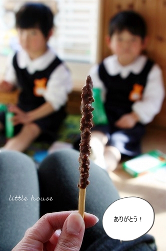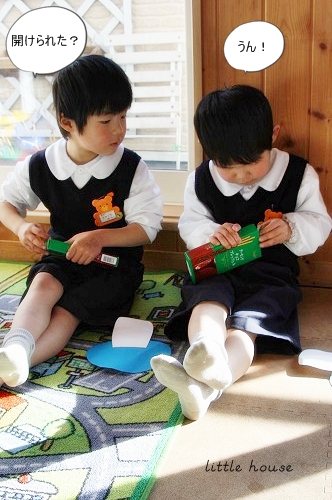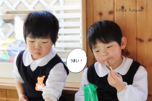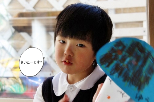 little house*■双子とお兄ちゃんの暮らし■ のんびりゆっくり気ままなフォト日記・・・*PAGE | 401 402 403 404 405 406 407 408 409 410 411 | ADMIN | WRITE 2009.02.12 Thu 12:48:16 きのこさんとおやつtime*・・・・・・・・・・・・・・・・・・・・・* 今日は、春1番が吹いているそうです。 それにしてもすごい風・・・ ゴ~ゴ~ッとずごい音・・・ 昨日辺りから、とうとう花粉症らしき症状も出てきちゃいました。 お鼻がムズムズです・・・(>_<)”” まだまだマスクが手放せそうにありません・・(Y_Y) しかも最近ノーメークの私。(イカンッ) *・・・・・・・・・・・・・・・・・・・・* 最近・・・ 選挙が朝から晩まですごい音で走り回っていますね~ これだけなら、まだいいのですが・・・ 電話はやめて欲しいのです。 昨日は祭日だったせいなのか? 引っ切り無しに我が家に掛かってきて 『選挙の応援お願いします!』の電話・・・。 しかも忙しいときに掛かってくるので めちゃくちゃ迷惑でした・・・('Д')コラ~! 1.2件位ならハイハイ!って対応できてましたけど・・・ さすがにそれ以上掛かってくると正直めんどくさいと言うか・・・ さすがに迷惑! 最後の方は、めちゃくちゃさめて対応していた私・・・。 選挙って電話掛かってきましたっけ? 去年まであんまり気にしたこと無かったんだけど・・・ 今年は、ヒジョーーーーーーーに<しつこく迷惑してます(怒)" まさか!家だけ??? さすがに今日は電話無いのでホッとしてます(^。^)ヨカッター *・・・・・・・・・・・・・・・・・・・・* きっきっきのこー♪っと 時々、幼稚園で習った『きのこ』の歌を歌う双子たち。 それがめちゃくちゃ、可愛いのです♪ お製作でも可愛いきのこを作って持ってきてくれました。 可愛い・・・* 双子だけど、個性が違うのね~♪ せっかくなので、きのこちゃんを持って記念撮影☆ 二人一緒に撮ろう!と言ったら・・・ 断られました(Y_Y)何故だ~? そんな訳で、まずはそらちゃん* ↓ 妙に照れております。 続いて…ゆうちゃん。 ↓ なかなか上手じゃない! そしておやつを食べるそらちゃん* お菓子が出たとたん・・・ きのこさんは、ほったらかし状態なのです。 ↓ あらま~ お菓子と一緒に記念撮影するというので・・・ 気を取り直して・・・ ↓ めちゃくちゃ笑ってるそらちゃん・・・* アッ・・・ 顔隠してる~っ・・・ ↓ ねー!ねー! お顔みせて~♪ うん!そうそう・・・ ソロソロお菓子を食べたい二人・・・ そらちゃんから、ママへ1本おすそ分けしてもらっちゃいました~♪ 『ありがとう』そらちゃん。 ↓ 『おっ・・美味しいじゃない!』 そらちゃんが・・・ いきなりポッキーを全部出し始めた。 え~? それどうするの~?? ゲッ???? わしずかみ?(汗)" ↓ チョコレートさん、溶けないでね~(>_<)” そして、ポッキーを味わうお二人さん・・・* ↓ そ・・・そらちゃんたら・・・。 ・・・・・・・・・・・・・・・・・・・・・・・・・・・* 日記がおもしろかったら・・ポチッと押して頂けると嬉しいです* ぜひ!応援!!宜しくお願いします* ↓ ポチッ ![]() ◆お問合せ&お便りメールはこちらからどうぞ◆ ![]() PR |