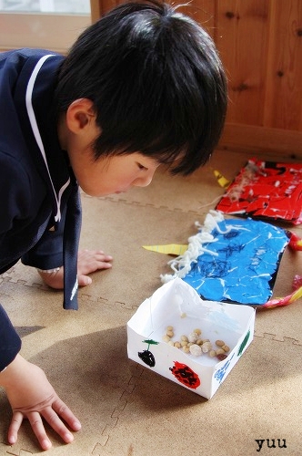 little house*■双子とお兄ちゃんの暮らし■ のんびりゆっくり気ままなフォト日記・・・*PAGE | 405 406 407 408 409 410 411 412 413 414 415 | ADMIN | WRITE 2009.02.05 Thu 23:10:12 最近の出来事いっぱい・・・*・・・・・・・・・・・・・・・・・・・・・* 我が家の最近の出来事をいっぱい・・・ 子供達が育てていた水栽培のヒヤシンス。 やっと少し花を咲かせてくれました! もう少ししたら、ブリキのバケツの鉢植えにしようと思います。 大切に育てた球根が綺麗に咲いてくれると 嬉しいものですね・・・♪ 子供達と一緒にニコニコしながら眺めていました。 *・・・・・・・・・・・・・・・・・・・・・* そして私の誕生日(1/29)に パパからもらった贈り物・・・ 中身は・・・ アンティークな雰囲気の木箱。 きゃ~素敵な木箱* その中には・・・ すごく可愛い~♪ リボンのピアスでした。 キャ~♪ 嬉しい・・・(^^) 少ないお小遣いの中から買ってくれたのでした。 パパ、ありがとう! *・・・・・・・・・・・・・・・・・・・・* そして・・・ 2月3日の節分の日に 双子達は 幼稚園で鬼のお面と お豆を入れる枡を作ってきました! ん~♪ なかなか上手じゃないですか!(←親バカですみません・・・) ちなみに・・・ 青鬼はゆうちゃん作で、 赤鬼はそらちゃん作です。 幼稚園でもらったお豆さんを 早速、枡に入れてみたゆうちゃん・・・。 何だか美味しそうなお豆さん。 アッ・・・ 食べたな。 ↓ 『おいしー』 鬼のお面をつけて、 二人で並んでみました。 満足げなお二人さん・・・♪ ↓ 早速… 豆まきごっこ? 練習???を する二人・・・。 ゆう:『豆まくぞ~!』 ゆう:『鬼は外~♪』 (パラッ…) そらちゃんが鬼役らしいです。 ↓ ゆうちゃん、豆まき役です! ↓ ゲッ・・・ あの~。・・・ 何か違いません? そらちゃん・・・。 ↓ すごい顔・・・('Θ')ヒエ~ッ ・・・でも、豆まきごっこはかなり楽しいようです♪ ↓ そして・・・ ゆうちゃんを狙う、そらちゃん。 ↓ 今度は、ゆうちゃんが鬼役になるんだとか・・。 (相談中のお二人さん・・・) ↓ ゆうちゃん、鬼役☆がんばって! アッ・・・ 前見えてません・・・(汗)" この日の夜も、 家族で豆まきしましたよ~♪ 福は内・・・来るといいな* *・・・・・・・・・・・・・・・・・・・* そして最後に・・・近状を。 恐れていたインフルエンザに ゆうちゃんが掛かってしまいました。 3日まで豆まき出来る位、元気モリモリだったのに 4日の朝、突然38.7度の発熱をしてしまいました。 もしや?・・・っと思い 朝1番で病院へ行って検査をしてみたら・・・ やっぱり!インフルエンザのA型でした(Y_Y)”””ヒエ~ッ そして・・・ 今回はタミフルではなくて リレンザが処方されました。 初めて使うお薬だったので、どうかな~っと思ったけど、 思いのほか、使いやすくて ゆうちゃんも楽に出来たのでホッと一安心でした。 お昼からリレンザをして30分くらいして すごく辛そうになったんですが、山を越えたら スーーっと楽になったみたいでした。(良かった!) こんなことする元気も・・・(^-^*)ホッ ↓ こんな時でも変顔を忘れない ゆうちゃん・・・(笑) ↓ そしてこの日から・・・ 我が家はみんな マスクマン星人になったのです。 『見たなーーーッ』 今の所、ゆうちゃんだけインフルエンザになっちゃったけど… きっと私を含め誰かしら・・・? 移ってそうだな~(怖)" もし・・・ 日記の更新が途絶えたら… 私がなっていると思ってください(宣告!) な~んて! でも、ありえます。 今朝のゆうちゃんは、至って元気でした。 リレンザ効きますね~♪(すごいなぁ~) そして、朝からピコをするゆうちゃん。 ↓ この後も1日中、遊びまくっていました。 ちょっと元気になるとコレだから困ります・・・(>_<)”” 皆さんもインフルエンザまだ流行っているので 気をつけてくださいね! ・・・・・・・・・・・・・・・・・・・・・・・・・・・* 日記がおもしろかったら・・ポチッと押して頂けると嬉しいです* ぜひ!応援!!宜しくお願いします* ↓ ポチッ ![]() ◆お問合せ&お便りメールはこちらからどうぞ◆ ![]() PR |