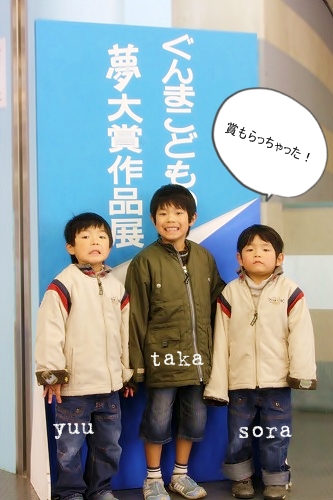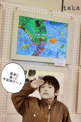 little house*■双子とお兄ちゃんの暮らし■ のんびりゆっくり気ままなフォト日記・・・*PAGE | 423 424 425 426 427 428 429 430 431 432 433 | ADMIN | WRITE 2009.01.03 Sat 00:10:27 お兄ちゃんの絵・・・*memo* (写真をクリックするとよりきれいに写真が見れます) ・・・・・・・・・・・・・・・・・・・・・* 正月早々・・・ この人は、イタズラマンでした☆ ↓ あ~っ もう~! ギリギリの所を歩くなんて・・・ 『コラ~!!!』危ないってば・・・('д')”” ゆうちゃんっ~(V_V*)""" ヤレヤレ・・・ そして・・・ 今日は、お兄ちゃんが朝から風邪でダウンしてしまいました。 昨日まではあんなに元気だったのに・・・(T_T) なので、お薬を飲んで半日寝ておりました。(大丈夫か~?) でも、夜にはずいぶん顔色も良くなって・・・ ホッとしています。 そんな訳で、予定していた初詣も今日は行けなかったので 明日行ってこようと思っています。(行けるかな~?) お年玉をもらった3兄弟・・・ 明日はお目当ての玩具とおやつを買うんだとか・・・♪ 楽しみだね! *・・・・・・・・・・・・・・・・・* さて・・・ 昨年・・・の話なのですが。 お兄ちゃんが、夏休みに書いた 『ぼくの夢、私の夢』と言う 課題があリまして・・・ それに応募した所・・・ 見事、『奨励賞』を頂きました~! 賞に入った絵が展示されると言うので見に行ったんですが・・・ 昨年中にupし忘れていたので、ちょこっとだけ・・・ 紹介してみますね!(遅くなりました・・・) ↓ お兄ちゃんの絵がここに飾られたんです☆ (すご~い!) ...っとその前に、 腹っぺりの3兄弟、ちょっと腹ごしらえしました。 ラーメンを食べ終えたゆうちゃん・・・ ↓ 食べ疲れたんだとか・・・(えっ~?) ・・・あっ。 ↑出ました。変顔ゆうちゃんです。 (あの~すごいんですけどそのお顔・・・) あっ、そうそう・・・ そのお顔の方が可愛いです* ↓ そらちゃんは・・・? ↓ まだ食べてました(^-^)”” お兄ちゃんは、大好きなチュリトスをパクリンコ☆ ↓ これ、お砂糖いっぱいでめちゃくちゃ美味しかったのです。 そらちゃんも・・・ パクリンコ☆ ↓ ・・・あっ、そらちゃん・・・。 口の周りが・・・ すんごいです。(’〇’)あ~~~~っ あんまりにも美味しそうなので・・・ ママも一口もらいました! うん!ウマイ☆ 結局、お腹いっぱいのゆうちゃんも ←別腹でチュリトス食べていたのでした・・・(汗)” さぁ~♪ お腹もいっぱいになったことだし・・・ お兄ちゃんの絵を見に行くぞ~! でも、なかなか見付からなくて・・・ あちこち探してしまいました(汗)” 『あった~!』 ↓ 絵のタイトルは・・・ 『電車に乗って宇宙旅行・・・』です。 お兄ちゃんは電車好きなので、こんな絵を描いたのでした。 まさか・・・ これが賞に入るなんて・・・(驚!!) でも、嬉しいです♪ お兄ちゃんが1番喜んでましたけどね・・・ ↓ そうそう・・・ そういえば・・・ 1年生の時も賞を頂いてました。 題名は・・・ 『おしゃれな太陽』だそうです。 ↓ この絵は、 賞を頂いて、1年間学校に飾られていました・・・。 我が子ながら... 発想がすご~い・・・(^-^*)/ ・・・・・・・・・・・・・・・・・・・・・・・・・・・* 日記がおもしろかったら・・ポチッと押して頂けると嬉しいです* ぜひ!応援!!宜しくお願いします* ↓ ポチッ ![]() ◆お問合せ&お便りメールはこちらからどうぞ◆ ![]() PR |