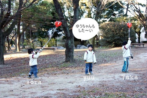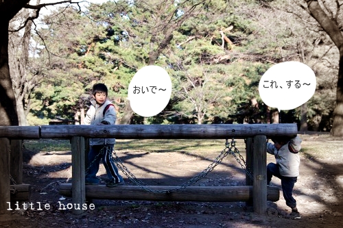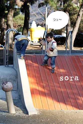 little house*■双子とお兄ちゃんの暮らし■ のんびりゆっくり気ままなフォト日記・・・*PAGE | 427 428 429 430 431 432 433 434 435 436 437 | ADMIN | WRITE 2008.12.28 Sun 23:25:14 冬の散歩道・・・*memo* (写真をクリックするとより綺麗な写真が見れます) ・・・・・・・・・・・・・・・・・・・・・* ふと空を見上げてみたら、 澄み切った綺麗な空でした。 寒空だけど・・・ 子供達の元気パワーに押されて・・・ 冬のお散歩を楽しんできました。 寒いけど綺麗な空を見上げると ちょっぴり元気が出ます。 ん? この木の実は、なんだろう? いっぱい木の幹に付いていました。 公園に着くと・・・ ちょっぴり寒そうな白鳥さんがお出迎え・・・ ↓ さすがに・・・寒いからボートに乗る人はいないなぁ・・・ アヒルさんに触りたかったそらちゃん・・・ 接近しすぎて、池に落ちそうになりました(汗)"" 落ちなくて良かったです・・・(ホッ) アヒルさんを数える二人・・・ ↓ 123456890・・・ いつも・・・何かが抜けてます ('Θ')違いますぞ・・・ 我が家の3兄弟・・・* それにしても・・・ 寒いのだ。 アヒルが気になって仕方の無いゆうちゃん。 ↓ 生き物大好きさんです。 トコトコと少し歩いていくと・・・ ゆうちゃんが、落ち葉を見つけて遊んでいました。 ↓ 落ち葉? よく見ると松の落ち葉でした。 それで? それをどうするのかしら・・・? あっ・・・ そらちゃんに邪魔されてました。(笑) ↓ そらちゃんがいなくなった隙に・・・ ゆう:『それ~っ』 ・・・これを飽きるまでやっておりました...ハイッ(゜д゜)” その頃... そらちゃんは、ターザンロープを贅沢にも2本使いで 遊んでました(笑) ↓ そらちゃんも・・・ 飽きるまで楽しんでました...(ヤレヤレ・・・) すると・・・ それを見ていた、ゆうちゃんとお兄ちゃんも ターザンロープを始めてしまいました。 ↓ あら? ゆうちゃん、ロープに届かなそう・・・? ありゃ。。。 落ちた! ↓ 大丈夫かな・・・? それにしても・・・ やっぱり、寒い! なので、寄り道しながら戻りました。 いかだにも乗ってしまった・・・ 落ちるなよ・・・(汗)"ドキドキ... ↓ ・・・カメラを撮るだけの私・・・ めちゃくちゃ、寒いのだ。 それに比べて、子供達は寒いのなんて何のその! 元気すぎます☆ サーフィン滑りを楽しむそらちゃん・・・* ↓ ゆうちゃんも・・・ 真似してみました。 ↓ これもまた、飽きるまで滑り続けたお二人さん・・・ ねっ!ねっ! お兄ちゃん、ママ寒いの~('~')ブルブル・・・ たか:『僕は、平気だよ・・・』 母:『ァ・・・あそぅ~』 ・・・子供は風の子ってよく言いますけど、 ん~何だか分かる気がします。 寒かったけどお散歩は楽しい・・・ッ♪ でも、寒い~~~っ(>_<)”” *・・・・・・・・・・・・・・・・・・・・* 年賀状・・・ 25日に出し切りました!*ホッ まだ年賀状交換してもいいわ・・・♪ っと言う方がいらしたら、連絡くださいね! ↓ ・・・・・・・・・・・・・・・・・・・・・・・・・・・* ■2009'年賀状交換■ ・・・・・・・・・・・・・・・・・・・・・ (こちらを送ってくださいね!) ●お名前とハンドルネーム(ある方) ●連絡先(〒) ●メールアドレス ●HPをお持ちの方は教えてね! ・・・・・・・・・・・・・・・・・・・・・・・・・・・* 日記がおもしろかったら・・ポチッと押して頂けると嬉しいです* ランクダウンしちゃった~↓ ぜひ!応援!!宜しくお願いします* ↓ ポチッ ![]() ◆お問合せ&お便りメールはこちらからどうぞ◆ ![]() ◆掲示板(コメント)右下のcommentから入れます。↓ PR |