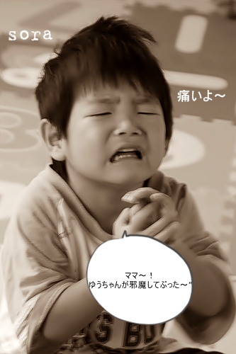 little house*■双子とお兄ちゃんの暮らし■ のんびりゆっくり気ままなフォト日記・・・*PAGE | 474 475 476 477 478 479 480 481 482 483 484 | ADMIN | WRITE 2008.09.28 Sun 12:25:42 双子のけんか・・*memo* (写真をクリックするとより綺麗な写真が見れます) ・・・・・・・・・・・・・・・・・・・・・* 双子ちゃんランキング~(T_T)ポチッと押して頂けると嬉しいです* 応援!!宜しくお願いします* ↓ ポチッ ![]() ・・・・・・・・・・・・・・・・・・・・・・・・・・* 朝、起きると(2人はかなりの早起きさんです) 2人で仲良く??ゴルフを楽しんでおりました・・・ 母:『まぁ~!2人とも仲良しね!』 こんな様子でしばらくその場を離れていた私・・・ すると・・・ 数分も経たないうちに何だかにぎやかになっていたのです。 母:怪しい・・・('д')・・・ソソソ 静かに2人の様子を見守っていると・・・ ゲッ・・・これは喧嘩ですか??? とにかく、激しいのです。 しまいには・・・ そらちゃん、ゆうちゃんにやられて泣いてしまいました~(ビエ~ン)(Y_Y)”” 2人の話を聞いてみると・・・ そらちゃんがあんまりにも楽しそうだったから、 ゆうちゃんはそらちゃんに悪気は無く? ちょっかい掛けてしまったとの事・・・ そうしたら、そらちゃんが本気で嫌がってきたので こんな結果になってしまったそうです・・・ ゴルフのパターが指に直撃してしまって痛いそらちゃんなのでした。 ゆうちゃん・・・ 浮かない顔してます。 ↓ ゴメンネも言わず・・・ 反省している様子も無く・・・ 私が一声掛けても・・・ 反応なし・・・(T_T)お~い! しまいには・・・ こんな顔・・・ (゜д゜)ゆう!!!ゴメンネしなさ~い! 最後の最後で、反省したようでして・・・ ゆう:『そらちゃん・・・ゴメンネ』 ・・・っと言えました。 兄弟げんかの時、 怪我をしない限りはいつも遠くから見守るのですが どちらかが痛い事になるとこうして私が仲裁に入ったりしています。 男の子は、喧嘩も成長のうちと割り切ってみても なかなか見ている方は、そうも行かないものですよね・・・ まだ可愛い位の喧嘩だけど・・・ これから先もう少し大きくなった男の子・・・難しいな~ この後は、お二人さんとっても仲良しで遊んでいたので 大丈夫ですよ~♪ ・・・・・・・・・・・・・* 昨日の夕方・・・ 子供達が『わ~~~~~~っ!すごいよ!ママ~~~~ッ』と 屋上から声がするのでなんだろう???と思いながら 上がってみると すごい夕焼けでした。 綺麗というより・・・ 何だか不気味・・・ ブツブツと赤く見えたのでちょっと苦手な夕焼けです。 (見ていたら鳥肌立ちました)ゾワ~ッ(>д<)””ヒエ~ 見た人いるでしょうか?? そらちゃんとパパは、肩車して仲良く遠くの夕焼けを見て 親子水入らずしてました。 こういうのいいな~♪ ・・・・・・・・・・・・・・・・・・・・・* 日記がおもしろかったら・・ポチッと押して頂けると嬉しいです* 応援!!宜しくお願いします* ↓ ポチッ ![]() ・・・・・・・・・・・・・・・・・・・・・・・・* ■お知らせ■ little houseのカウプレprezent企画 贈り物の準備が出来ました! プレゼントの中身は・・・(ちょこっとだけ・・・) ・・・ハンドメイドの雑貨やスタンプなんかも入れてみました* こんなものでよろしかったら、ぜひぜひ参加をお待ちしておりま~す! 尚、1度でもコメントされた方仲良くしていただいている方に限ります! (はじめましての方はごめんなさい) 抽選は、子供たちにくじを引かせようと思います。 9月30日いっぱいまで、参加募集しちゃいますので 参加希望の方は、こちらを明記の上メールくださいね* ・・・・・・ここからコピー・・・・・・ ■イベント参加します■ 1)お名前(ふりがなもおねがいします) 2)ハンドルネーム 3)HP(お持ちの方) 4)住所(郵便番号からお願いします) 5)メールアドレス 6)little house (mei*)に日頃のご意見ご感想&一言でもあれば 嬉しいで~す(^-^*)/何でもいいですよ~♪ ・・・・・・ここまでコピー・・・・・・・ メール先にペースト(貼り付け)記載を書いて送信してくださいね* お待ちしています! ◆イベント参加メールはこちらからどうぞ◆ ↓ ![]() ・・・・・・・・・・・・・・・・・* 日記がおもしろかったら・・ポチッと押して頂けると嬉しいです* ↓ ポチッ ![]() ◆お問合せ&お便りメールはこちらからどうぞ◆ ![]() ◆掲示板(コメント)右下のcommentから入れます。↓ PR |
