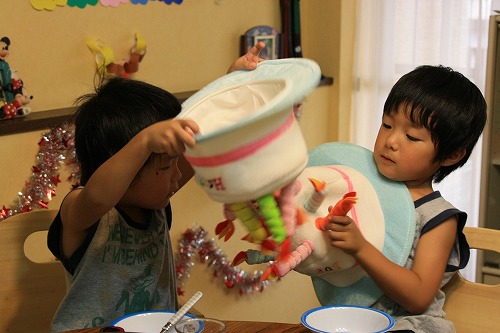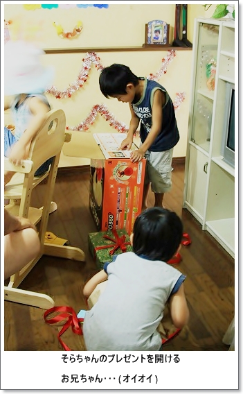 little house*■双子とお兄ちゃんの暮らし■ のんびりゆっくり気ままなフォト日記・・・*PAGE | 482 483 484 485 486 487 488 489 490 491 492 | ADMIN | WRITE 2008.09.15 Mon 14:56:05 ささやかな*ハッピバースディ~♪memo* (写真をクリックするとより綺麗な写真が見れます) ・・・・・・・・・・・・・・・・・・・・・・・・・・* 昨日は、双子のゆうとそらの5歳の誕生日でした。 そして・・・ささやかながら・・・ お家でパーティーをしました。 子供達で手作りの飾りを作ったり、飾りつけもしました・・・ (ママもお手伝いしましたが・・・) バースディー用のケーキの帽子もお揃いで被りました。 同じ帽子なのに・・・ 取替えっ子をする二人・・・(なぜ??) ↓ ん~~~~っ!!! いかが?(ゆうちゃん) ↓ エヘへ・・・(そらちゃん) ↓ ニコニコなお二人さん・・・ ↓ そしてお待ちかね・・・ふぅ~の時間です。 まずはみんなで・・・ ♪ハッピバースデー を歌います。 電気を消して・・・ ビデオとカメラをスタンバイ・・・(←ママ) そして、一緒に・・・ 「ふぅ~~~~~~っ」 パチパチパチ・・・おめでとう!!! つかさず・・・ ゆうちゃん、 ケーキ食べてました~(汗)" 写真撮る暇もありません・・・(T_T)ああ~っ そらちゃんは・・・ プレゼントが気になって仕方がありません・・・ でも・・・ 「あっ」・・・・・・・・・(そらちゃん) そらちゃんのプレゼントをお兄ちゃんが開けてしまったのでした・・・ (T_T) ↓ ・・・っとまぁ~ 小さなハプニングありの楽しいバースデーパーティーも 無事に送ることが出来ました。 ・・・ 本当におめでとう ・・・ これからも元気いっぱい大きくなってくださいね・・・ ママより・・・ ・・・・・・・・・・・・・・・・・・・・・* 日記がおもしろかったら・・ポチッと押して頂けると嬉しいです* ↓ ポチッ ![]() ・・・・・・・・・・・・・・・・・・・・・・・・* ■お知らせ■ ずっとお待たせしていた記念イベントを そろそろ準備しようと思っています。 (遅くなっちゃってごめんなさ~い) meiからのプレゼントは、今回届いてからのお楽しみ!っと言うことで 届くまで楽しみにして頂けたらと思います。 尚、1度でもコメントされた方仲良くしていただいている方に限ります! (はじめましての方はごめんなさい) 抽選は、子供たちにくじを引かせようと思います。 9月いっぱいまで、参加募集しちゃいますので 参加希望の方は、こちらを明記の上メールくださいね* ・・・・・・ここからコピー・・・・・・ ■イベント参加します■ 1)お名前(ふりがなもおねがいします) 2)ハンドルネーム 3)HP(お持ちの方) 4)住所(郵便番号からお願いします) 5)メールアドレス 6)little house (mei*)に日頃のご意見ご感想&一言でもあれば 嬉しいで~す(^-^*)/何でもいいですよ~♪ ・・・・・・ここまでコピー・・・・・・・ メール先にペースト(貼り付け)記載を書いて送信してくださいね* お待ちしています! ◆イベント参加メールはこちらからどうぞ◆ ↓ ![]() ・・・・・・・・・・・・・・・・・* 日記がおもしろかったら・・ポチッと押して頂けると嬉しいです* ↓ ポチッ ![]() ◆お問合せ&お便りメールはこちらからどうぞ◆ ![]() ◆掲示板(コメント)右下のcommentから入れます。↓ PR |