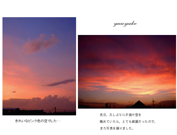 little house*■双子とお兄ちゃんの暮らし■ のんびりゆっくり気ままなフォト日記・・・*PAGE | 488 489 490 491 492 493 494 495 496 497 498 | ADMIN | WRITE 2008.09.04 Thu 14:21:46 熱中症・・・?memo* (写真をクリックすると大きな写真が見れますよ) ・・・・・・・・・・・・・・・・・・・・・・・・・・* 昨日、学校から電話がありました。(ビックリ!) 先生の話を聞くと… お兄ちゃんが「発熱して辛そうなので、迎えに来てください…」 との連絡でした。 えっ?朝はあんなに元気だったのに・・・? だから余計に心配でした。 そのころ、ちょうど幼稚園から双子たちが帰ってくるような 時間だったので「どっどうしよう~」…慌てちゃいました(汗)" 急いでいけば何とか間に合う??? っという事でひとまず幼稚園に連絡を入れてお兄ちゃんを 学校まで迎えに行きましたよ~(ビュ~ン) 学校に居たお兄ちゃんは…グッタリでした(T_T)ああ~っ とりあえず・・・ 一旦家に帰って、双子たちの到着を待ち一緒に病院へ行きました。 診断の結果… 軽い熱中症との事です。 運動会の練習で熱中症になってしまったのだろうな…(Y_Y) 夜も38~39度近く熱が出てお兄ちゃんダウンしてました。 可愛そうに… でも今朝は少し熱も下がり元気になったので安心しています。 早く元気になってね… 熱中症って怖いですね。 ・・・・・・・・・・・・・・・・・・・・・* 昨日の夕方は、とても綺麗な夕焼け空でした。 自然って素敵だな~ ・・・・・・・・・・・・・・・・・・・・・・・・* ■お知らせ■ ずっとお待たせしていた記念イベントを そろそろ準備しようと思っています。 (遅くなっちゃってごめんなさ~い) meiからのプレゼントは、今回届いてからのお楽しみ!っと言うことで 届くまで楽しみにして頂けたらと思います。 尚、1度でもコメントされた方仲良くしていただいている方に限ります! (はじめましての方はごめんなさい) 抽選は、子供たちにくじを引かせようと思います。 9月いっぱいまで、参加募集しちゃいますので 参加希望の方は、こちらを明記の上メールくださいね* ・・・・・・ここからコピー・・・・・・ ■イベント参加します■ 1)お名前(ふりがなもおねがいします) 2)ハンドルネーム 3)HP(お持ちの方) 4)住所(郵便番号からお願いします) 5)メールアドレス 6)little house (mei*)に日頃のご意見ご感想&一言でもあれば 嬉しいで~す(^-^*)/何でもいいですよ~♪ ・・・・・・ここまでコピー・・・・・・・ メール先にペースト(貼り付け)記載を書いて送信してくださいね* お待ちしています! ◆イベント参加メールはこちらからどうぞ◆ ↓ ![]() ・・・・・・・・・・・・・・・・・* 日記がおもしろかったら・・ポチッと押して頂けると嬉しいです* ↓ ポチッ ![]() ♪秋アジサイのドライ出品しています♪(本日終了) ◆お問合せ&お便りメールはこちらからどうぞ◆ ![]() ◆掲示板(コメント)右下のcommentから入れます。↓ PR |