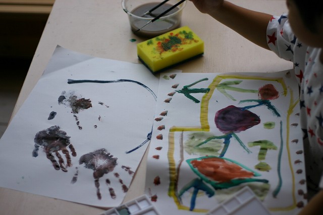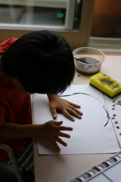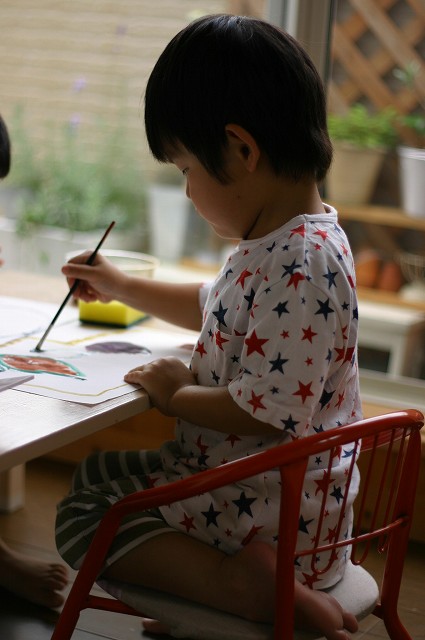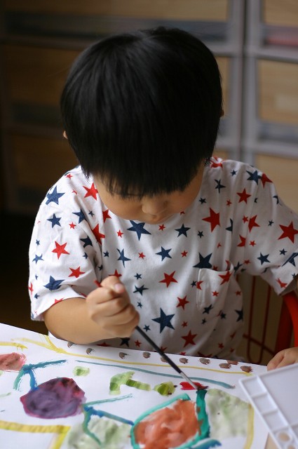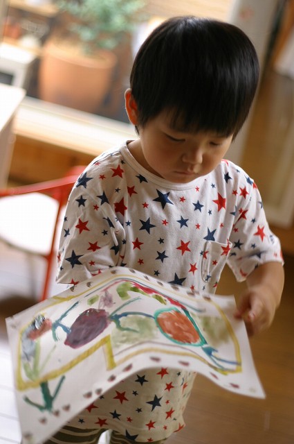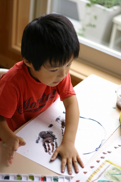 ラジオ体操、頑張って行ってますよ~ 双子のお二人さんは、追いかけっこして時間がつぶれてますが・・・(汗)" それなりに早起きして、楽しいみたいです。 そんな、双子のお二人・・・ 絵を描くことがすごく好きで・・・ 今日も朝早くから・・・ ほらね・・・ はじまってしましました・・・(ちなみに朝、7:40です) 早すぎ・・・('д')"" そらちゃんは、やっぱり正座してます(笑)"なぜ~? そして・・・書いておりました。そらちゃん、素敵~☆ それなりに描けたみたいで見せてくれました。 (そら)『ママ~出来た~!』 ゆうちゃんも大胆に筆を運んでいます。(まぁ~(゜〇゜)””) これは?ニコちゃん??? そして・・・ ゆうちゃん2作品目・・・ ゲッ・・・何が始まるの? いきなり、お手てを塗り塗り・・・(・з・)プ~ッ あらら~っ・・・ そのお手てを・・・ペッタンするのね(なるほど!) おお~っ出来ましたか? まだ行くのか・・・? そして完成作品はこちら・・・ なんて対照的な作品・・・(滝汗)" 将来が楽しみです・・・(←親バカ) ・・・・・・・・・・・・・・・・・* 日記がおもしろかったら・・ポチッと押して頂けると嬉しいです* ↓ ポチッ ![]() ◆お問合せ&お便りメールはこちらからどうぞ◆ ![]() ◆掲示板(コメント)右下のcommentから入れます。↓ PR |