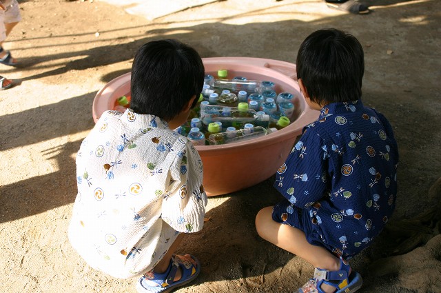 幼稚園の花火大会がありました。 お天気にも恵まれて(ちょっと暑かったけど・・・) 楽しかったです。 最初にちょっと懐かしい『アラレちゃん音頭♪』で 盆踊りがありました。 お面は、自分達の手作りだそうで・・・(なぜ豚さん??) でも可愛いのでok~♪と言うことにします(笑) お祭りでは、スーパーボールすくいがありました。 二人ともどれをGetしようか・・・かなり真剣です。 ↓ そらちゃん、かなり真剣!! 沢山すくえて袋に入れてもらいました。 (待ちきれないって顔をしてました。) ほらね~・・・ッ お兄ちゃんも一緒に夏祭りを楽しみました。 お兄ちゃん、一緒に卒園したときのお友達にも会えたので (初恋の人にも・・・) ムフフ・・・だったみたい*(笑) お二人さんラムネ好きです。 じーーーーーーーっと狙っています・・・ ラムネを飲んだ後は、もちろん!お宝のビー玉* 光にかざすと・・・綺麗・・・ (そらちゃん。。。近すぎ(汗)"") こんなところから・・・『アイ~ンッ』(怪)" お兄ちゃんの大好きな先生にも久しぶりに再会できました。 (先生、お世話になりました・・・) 二人が作ったちょうちんも発見! お祭りの間も二人は仲良し・・・♪ 最後にスタンプもペッタンコ! お兄ちゃんもペッタンコ(^-^)/ 双子っち達もペッタンコ(^-^)(^-^)/ 綺麗に押してもらえたね! ・・・・・・・・・・・・・・・・・* なかなかランクup出来ないものですね~(T_T) 万が一、1位になれたら『little house』から プレゼントイベントを企画と思っています。 子育ての励みに!にぜひ!ぜひ! ポチッポチッと押して頂けると嬉しいです* ↓ ポチッ ![]() ◆お問合せ&お便りメールはこちらからどうぞ◆ ![]() PR |