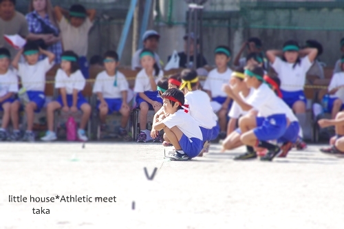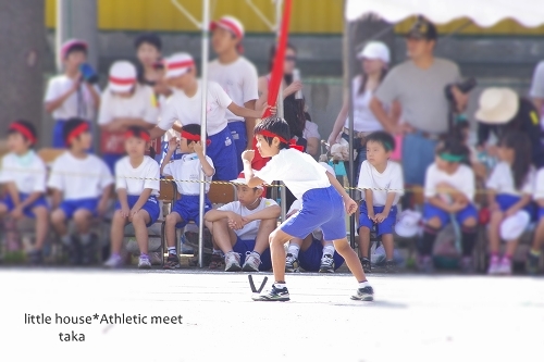 little house*■双子とお兄ちゃんの暮らし■ のんびりゆっくり気ままなフォト日記・・・*PAGE | 54 55 56 57 58 59 60 61 62 63 64 | ADMIN | WRITE 2010.09.25 Sat 00:07:45 ■ 運動会の思い出…その1 ■ (k-x)2010.9.18は… ゆうとそらにとって、小学校初めての運動会でした。 ●小学校の運動会● 幼稚園の時とは違って、 学校の広い校庭で元気いっぱい動き回っていました。 ●教室から自分の椅子を運ぶゆうちゃん…● ●そらちゃんも・・・● ●お兄ちゃんも・・・椅子を運んでいました● お兄ちゃんは、4年生なので・・・ もう慣れたものです。 ●えへへ…●(たかちゃん) 黄色の鉢巻き(そらちゃん)は、榛名団。 赤い鉢巻き(ゆうちゃんとたかちゃん)は赤城団でした。 カメラ目線のそらちゃん・・・(笑) ●ちらっ…*● お兄ちゃんの徒競走… 掛けっこはちょっと苦手なお兄ちゃん… ●順番待ちー● ●よーい!● ●どん!● 小さい頃は、なんじゃこりゃ?っていうようなフォームで 走っていたお兄ちゃんでしたが…(笑えました) 4年生にもなると、さすがにちゃんとしたフォームになってて それなりにカッコ良く一生懸命走っていました。 がんばれー! がんばれー! 結果は5人中4位…。 一生懸命頑張ったんだから、4位だって立派だよ! ●一緒に走った仲良しのお友達…● はにかみ王子のゆうちゃん。 かけっこの前の準備体操をしています。 ●ゆうちゃん● ●そらちゃん● 1年生は50mの徒競走でした。 今年、リレーの選手に選ばれていたそらちゃん。 えっ??まじ?? …っていうような、家族の反応ではありましたが…(笑) みんなすごく喜んでいました。 ●ようーい!●(そら) ●どん!●(そら) ●ちょっと出遅れたスタートで…結果は4位でした● ん!頑張った!頑張った! 続いて・・・ 実は… 我が家で1番足の速い・・・ゆうちゃんです。 スタートダッシュが遅れてしまって・・・(あ~~~っ!) …っと思いきや… ●ゆうちゃん● 何だか、ものすごく速くて・・・ ●追い越す!追い越す!● しまいには… ぶっちぎりの1位でございました。 ●ゴール!●(1位のゆうちゃん) すっとぼけたお方ですが… いつも必ず、何かをやらかしてくれるのでした・・・♪ (さすがじゃ~) ●1位で~す!●(ゆう) …実は、ゆうちゃんもリレーの選手の候補に挙がっていたんですが… (確かに、そらちゃんよりははるかに足が速いぞ・・・) でも・・・ 運動会前、熱を出したり… 咳が止まらなかったりして、学校をお休みしていたんです。 休んでしまったおかげで… 残念ながら、補欠。 …ゆうちゃんもとっても残念そうでしたが・・・ また来年、頑張ってもらうことにしましょう~♪ 運動会は、まだまだ続きます。 …つづく。 (camera = pentax k-x) *………………………* ■ 最後まで読んでくれて、ありがとう ■ ポチッ ![]() ↑ ↑ ↑ 日記がおもしろかったらポチッと押して頂けると嬉しいです* ■ ■ コメントはこちらへどうぞ ■ ■↓ ↓ ↓ PR |